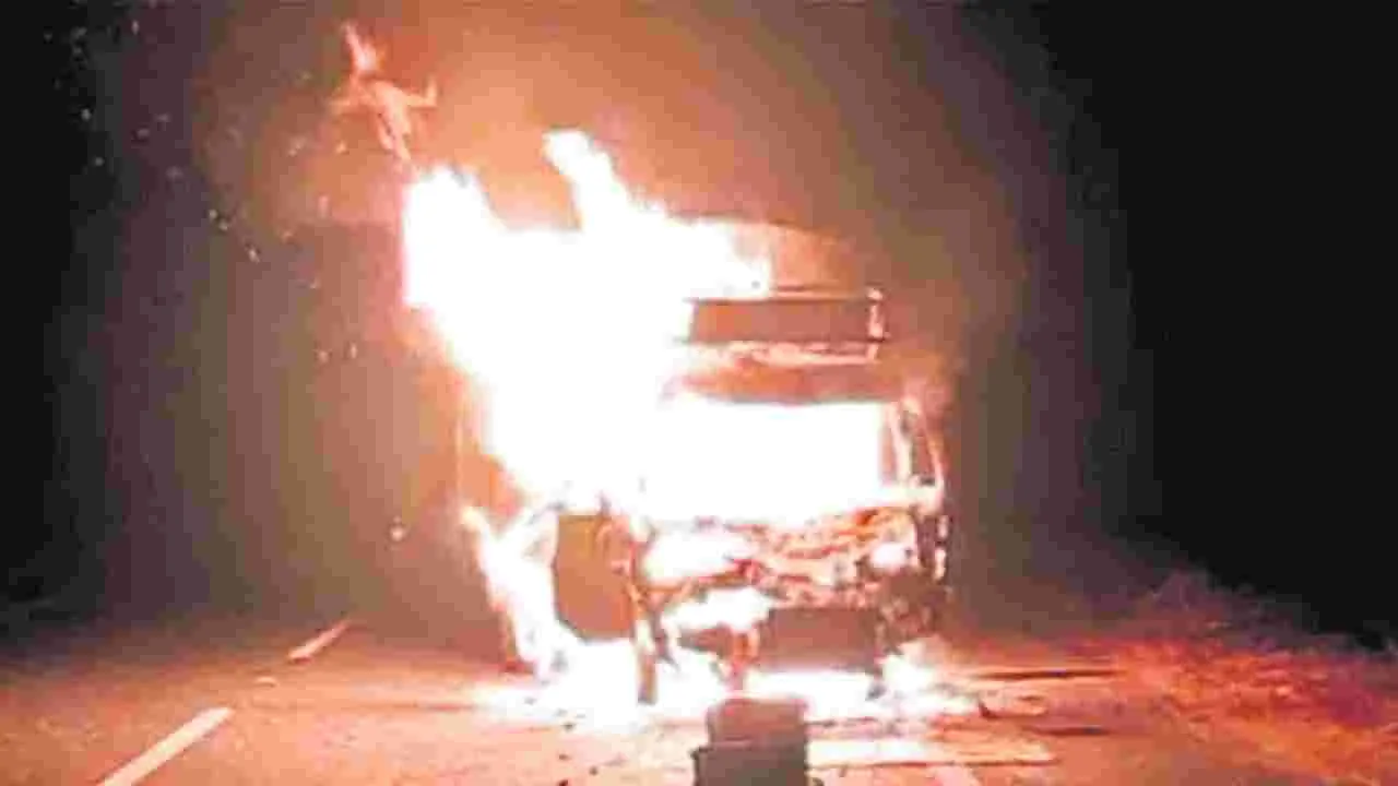 మినీవ్యాన్ డ్రైవర్ సజీవ దహనం, మరొకరికి గాయాలు