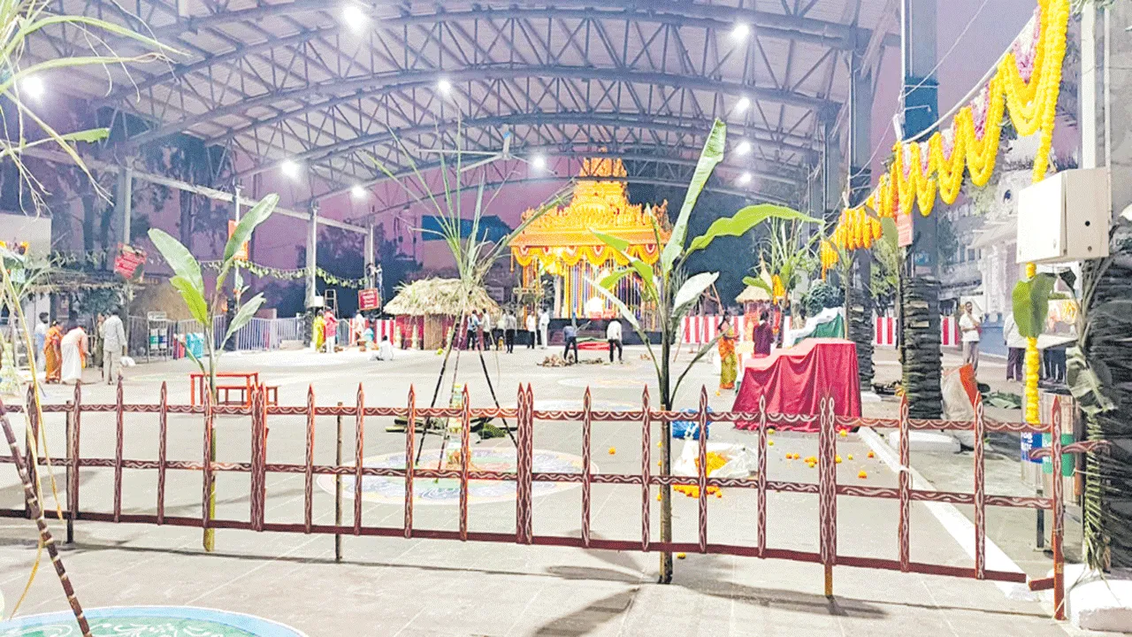 అన్నవరం, జనవరి 13 (ఆంధ్రజ్యోతి): ప్రముఖ పుణ్యక్షేత్రమైన సత్యదేవుడి సన్నిధి సంక్రాంతి సంబరాలకు ముస్తాబైంది. బుధవా రం ఉదయం 5.30కి తపోవనం సచ్చిదానంద స్వామీజీ చేతులమీదుగా భోగిమంటతో వేడుకలు ప్రారంభమవుతాయి. తెలుగుదనం ఉట్టి పడేవిధంగా కోడిపుంజులు, ఎడ్ల బండి, జంగమదేవర, బుడబుక్కల వేషధారణతో పాటుగా బొమ్మల కొలువులు, తెలుగు పిండివంటకాలు, ధా న్యపురాశులు, కొలను తదితర వాటిని ఏర్పా టు చేయనున్నట్టు చేయనున్నారు. ఆధునిక ప్రపంచంలో పూర్వపు సంస్కృతి, సంప్రదాయాలను గుర్తుకు తెచ్చుకోనేవిధంగా ఏర్పాటు చేసినట్టు ఆలయ ఈవో త్రినాథరావు తెలిపారు.