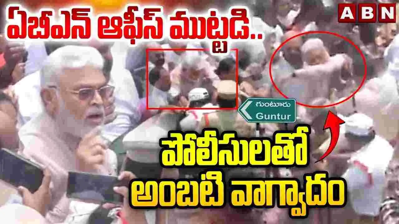 గుంటూరులో మాజీ మంత్రి అంబటి రాంబాబు ఓవరాక్షన్ చేశారు. పోలీసులతో దురుసుగా ప్రవర్తించారు. ఆంద్రజ్యోతి కార్యాలయంవైపుకు దూసుకెళ్లేందుకు యత్నించిన అంబటిని పోలీసులు అడ్డుకున్నారు.