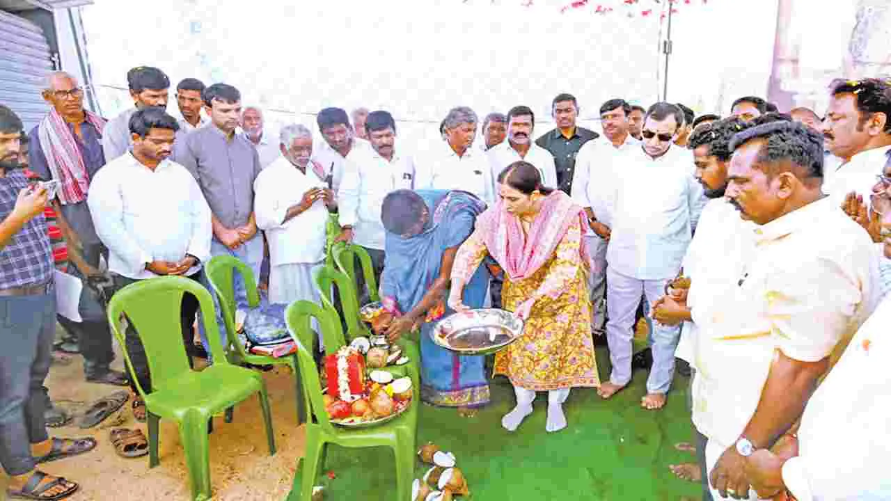 కడప మారుతీనగర్, ఏప్రిల్ 13(ఆంధ్రజ్యోతి): కడప నగరంలోని 15వ డివిజన్ పరిధిలోని పుట్లంపల్లెచెరువు కట్ట వద్ద రూ.1.35 కోట్లతో చేపట్టనున్న 2.5 కిలోమీటర్ల రోడ్డు నిర్మాణ పనులకు ప్రభుత్వ విప్, కడప ఎమ్మెల్యే ఆర్.మాధవి, పొలిట్బ్యూరో సభ్యుడు ఆర్.శ్రీనివాసరెడ్డి సోమవారం భూమిపూజ చేశారు. గత నెల 18న 15వ డివిజన్లో ‘ఏబీఎన్-ఆంధ్రజ్యోతి’ నిర్వహించిన ‘అక్షరం అండగా.. పరిష్కారమే అజెండాగా’ కార్యక్రమానికి ఎమ్మెల్యే మాధవి, పొలిట్బ్యూరో సభ్యుడు హాజరయ్యారు. ఈ సందర్భంగా డివిజన్లోని పలు సమస్యలను ప్రజలు వారి దృష్టికి తీసుకొచ్చారు. నెలరోజుల్లో రూ.1.45 కోట్లతో రోడ్లు, డ్రైనేజీ పనులు ప్రారంభిస్తామని ఆరోజు హామీ ఇచ్చారు. ఈ నేపథ్యంలో రోడ్డు పనులకు సోమవారం భూమిపూజ చేశారు.
