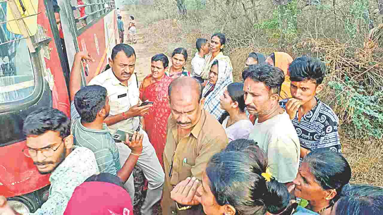 ఓవర్టేక్ చేసి అడవి మఽధ్యలో బస్సు అడ్డగింత
