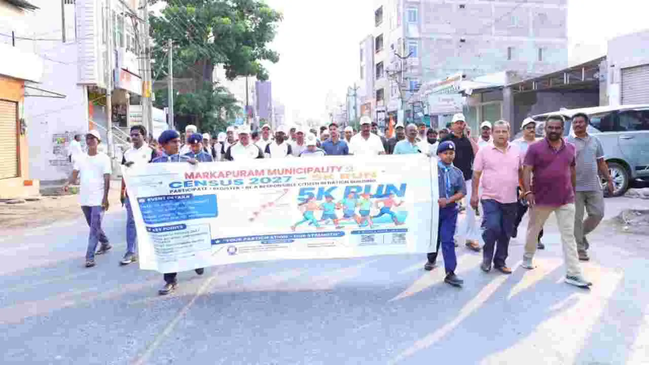 విజయవాడ, మార్కాపురం ఏప్రిల్ 26 (ఆంధ్రజ్యోతి): భారతదేశ చరిత్రలో తొలిసారిగా నిర్వహిస్తున్న డిజిటల్ జనగణన (Digital Census) ప్రక్రియపై ప్రజల్లో చైతన్యం కల్పించేందుకు ఆంధ్రప్రదేశ్ ప్రభుత్వం శ్రీకారం చుట్టింది. ముఖ్యంగా సెన్సస్ సెల్ఫ్ ఎన్యుమరేషన్(స్వీయ జనగణన) ఆప్షన్ను ప్రజలు వినియోగించుకోవాలని కోరుతూ ప్రభుత్వం రాష్ట్రవ్యాప్తంగా అవగాహన కార్యక్రమాలు నిర్వహిస్తోంది. ఈ రోజు(ఆదివారం) ఉదయం విజయవాడ, ప్రకాశం జిల్లా మార్కాపురంలో భారీ స్థాయిలో 5కె రన్ కార్యక్రమాలు జరిగాయి.
