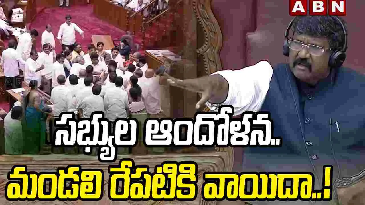 చైర్మన్ పోడియం వద్ద వైసీపీ ఆందోళన.. మండలి వాయిదా