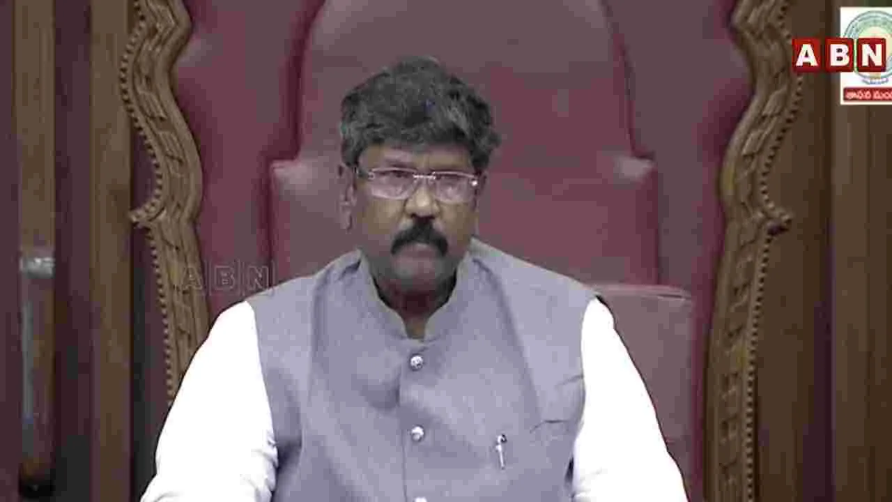 అమరావతి, మార్చి 5: ఏపీ శాసనమండలిలో(AP Legislative Council) మరోసారి గందరగోళం నెలకొంది. తిరుమల నెయ్యి కల్తీ అంశంపై లఘు చర్చ సందర్భంగా మంత్రి ఆనం రామనారాయణ రెడ్డి (Minister Anam Ramanarayana Reddy) ఈ అంశంపై వివరణ ఇస్తుండగా వైసీపీ సభ్యులు ఆందోళనకు దిగారు. మంత్రి వివరణ సమయంలోనే మతాల ప్రస్తావన చేసిన అచ్చెన్నాయుడిని మంత్రి పదవి నుంచి తొలగించాలని వైసీపీ సభ్యులు నినాదాలు చేశారు. వైసీపీ సభ్యులు చైర్మన్ పోడియం పైకి ఎక్కి నిరసన చేయడంతో సభను కొద్ది సేపు వాయిదా వేశారు చైర్మన్.