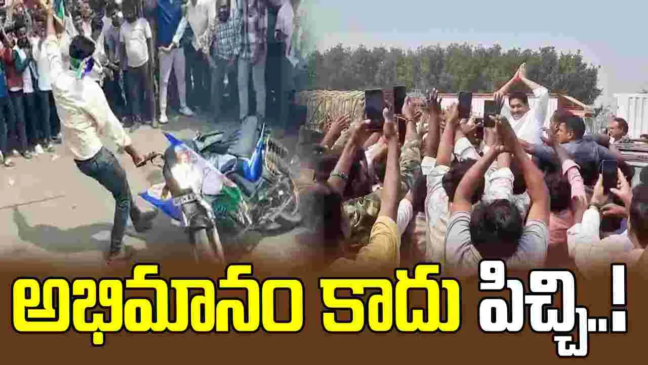 విజయవాడ, ఫిబ్రవరి 06: వైసీపీ అధినేత, మాజీ సీఎం వైఎస్ జగన్ మోహన్ రెడ్డి పర్యటన నేపథ్యంలో ఇబ్రహీంపట్నంలో శుక్రవారం ఉద్రిక్త పరిస్థితులు నెలకొన్నాయి. స్థానికంగా ఏర్పాటు చేసిన జగన్ ఫెక్సీలకు ఆయన అభిమానులు చేతులు కోసుకుని రక్త తిలకం దిద్దారు. అలాగే బైట్ స్టంట్లతోపాటు 'జై జగన్, సీఎం సీఎం జగన్' అంటూ పెద్దఎత్తున నిదానాలు చేశారు. వారిని నిలువరించేందుకు పోలీసులు రంగంలోకి దిగారు. వారి ప్రయత్నాలను ఆపే క్రమంలో.. జగన్ అభిమానులు గుంపులు గుంపులుగా పోలీసుల మీదకు దూసుకెళ్లారు. దీంతో ఇబ్రహీంపట్నంలో ఉద్రిక్తత పరిస్థితులు ఏర్పడ్డాయి. మరోవైపు జోగి రమేశ్తోపాటు పలువురు నేతలు అక్కడే ఉన్న అభిమానులను కట్టడి చేయకపోవడం గమనార్హం.