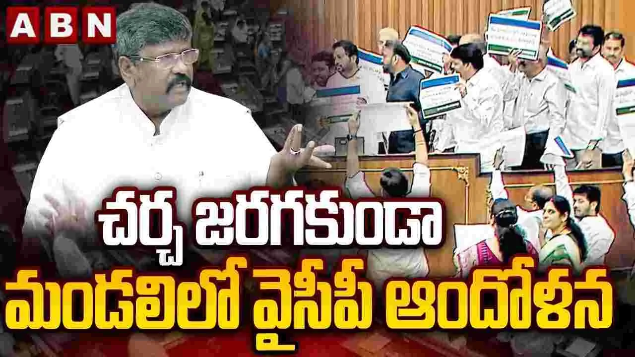 వైసీపీ సభ్యులు ఇచ్చిన వాయిదా తీర్మానాన్ని ఛైర్మన్ తిరస్కరించడంతో.. ఆ పార్టీ సభ్యులు పోడియం వద్దకు వచ్చి నిరసన తెలిపారు. ఇలా ఛైర్మన్ పోడియం వద్దకు వచ్చి నిరసన తెలపడం ఏంటని మంత్రి నాదెండ్ల మనోహర్ ప్రశ్నించారు. ‘ఛైర్మన్కు గౌరవం ఇవ్వటం ఇదేనా’ అని ఆగ్రహం వ్యక్తం చేశారు. వైసీపీ సభ్యుల నిరసనతో సభలో గందరగోళం నెలకొనడంతో ఛైర్మన్ సభను వాయిదా వేశారు.