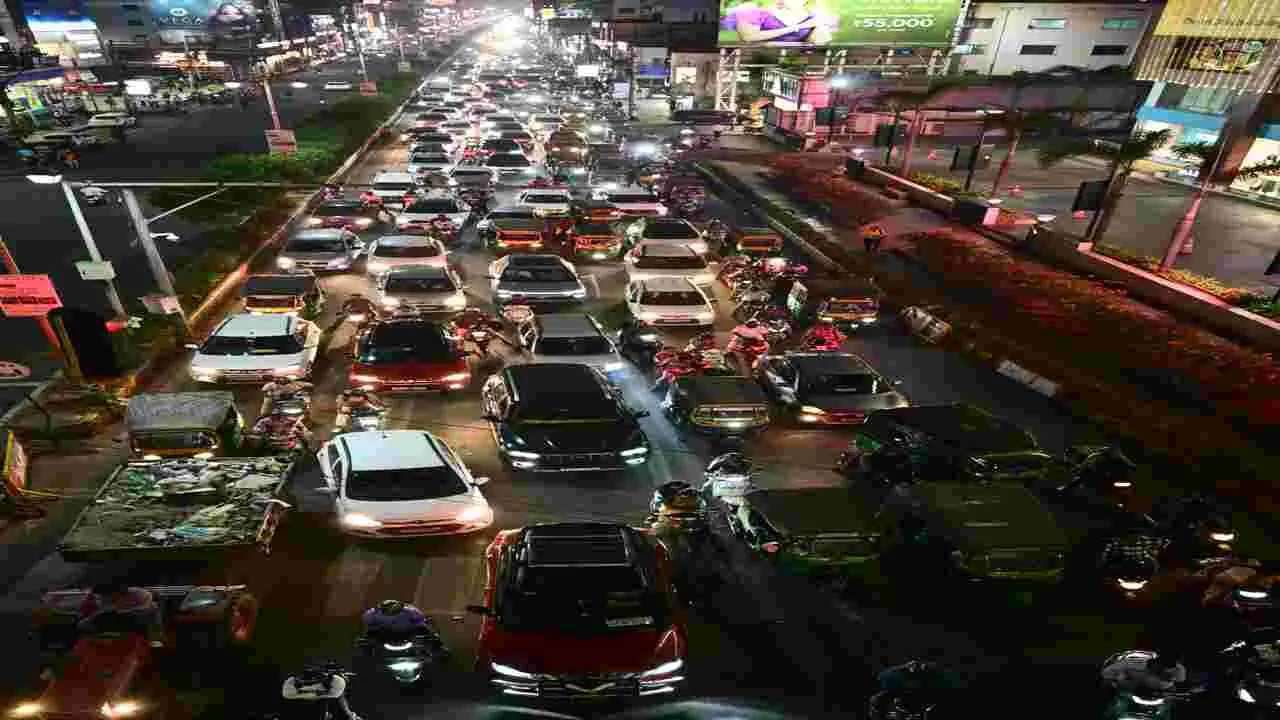 భారీగా స్తంభించిన ట్రాఫిక్