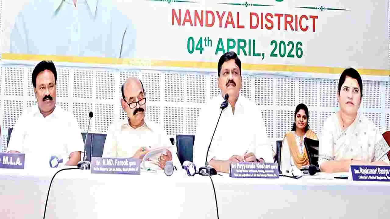 నంద్యాల/ నంద్యాలనూనెపల్లి, ఏప్రిల్ 4 (ఆంధ్రజ్యోతి): ‘పారదర్శక పాలనతో పాటు బలమైన వ్యవస్థలను నిర్మించడమే లక్ష్యంగా కూటమి ప్రభుత్వం అడుగులు వేస్తోంది. నిధుల వ్యయంలో పారదర్శకత దిశగా చర్యలు తీసుకుంది. నంద్యాల జిల్లా అభివృద్ధి, సంక్షేమానికి బృహత్తరమైన ప్రణాళికతో ముందుకెళ్తున్నాం’ అని రాష్ట్ర ఆర్థికశాఖ, జిల్లా ఇన్చార్జి మంత్రి పయ్యావుల కేశవ్ అన్నారు. శనివారం నంద్యాల కలెక్టరేట్ కార్యాలయంలోని పీజీఆర్ఎస్ భవన్లో ‘జిల్లా బడ్జెట్ అవుట్రీచ్ 2026-27’ సమావేశం జరిగింది. ఈ సమావేశానికి మంత్రి పయ్యావుల కేశవ్తో పాటు మైనార్టీ, న్యాయ శాఖ మంత్రి ఎన్ఎండీ ఫరూక్, నందికొట్కూరు ఎమ్మెల్యే గిత్తా జయసూర్య, కలెక్టర్ రాజకుమారి, రాష్ట్ర విత్తనాభివృద్ధి సంస్థ చైర్మన్ ధర్మవరం సుబ్బారెడ్డి, జిల్లా స్థాయి అధికారులు హాజరయ్యారు. జిల్లా సమగ్ర బడ్జెట్ కేటాయింపుల వివరాలను మంత్రి పయ్యావుల కేశవ్ వెల్లడించారు. ప్రధానంగా వివిధ అభివృద్ధి పనులతో పాటు సంక్షేమ పథకాల పరంగా 2026-27 ఏడాదికి రూ.2,626.92 కోట్లు కేటాయించారు. పేదల సంక్షేమంతో పాటు జిల్లా సమగ్రాభివృద్ధికి బాటలు వేసే విధంగా జిల్లా నిధుల కేటాయింపు చేశారు. అదేవిధంగా రైతులకు అండగా రాయలసీమ జిల్లాలో హార్టికల్చర్ హాబ్ కోసం త్వరలో రూ.40 కోట్లు ఖర్చు చేయనున్నట్లు మంత్రి పయ్యావుల ప్రకటించారు. నంద్యాల జిల్లాలో తాగునీటి సమస్య తలెత్తకుండా ముందస్తుగా అన్ని చర్యలు చేపట్టాలని అధికారులను ఆదేశించారు. గ్రామాల్లో ఉన్న బోర్వెల్స్కు తప్పనిసరిగా జియో మ్యాపింగ్ చేయాలని, మరమ్మతు కావాల్సిన బోర్ల వివరాలను సేకరించాలన్నారు. విద్యుత్ అంతరాయం లేకుండా అవసరమైన చోట ట్రాన్స్ఫార్మర్లను ఏర్పాటు చేయాలని విద్యుత్ శాఖ అధికారులను ఆదేశించారు. అవసరాన్ని బట్టి డీఎంఎఫ్ నిధులను వినియోగించుకోవాలని కలెక్టర్కు సూచించారు.