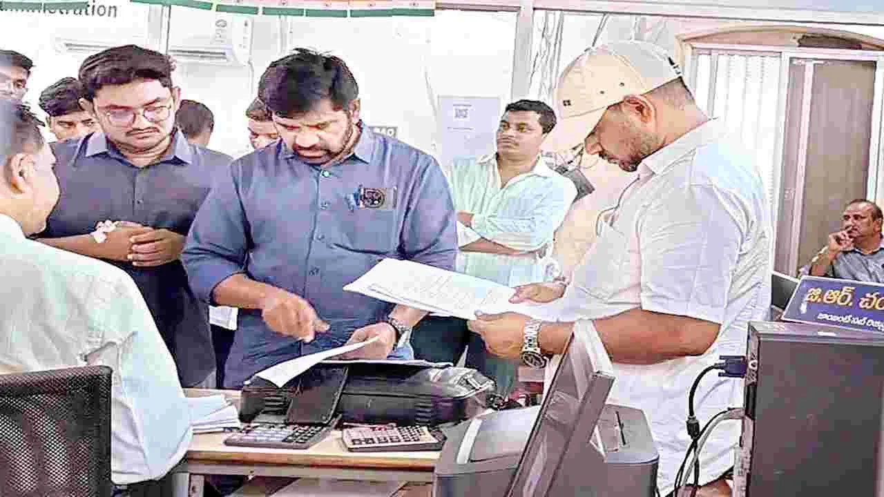 నంద్యాల క్రైం, మార్చి 23 (ఆంధ్రజ్యోతి): నంద్యాల సబ్ రిజిస్ట్రార్ కార్యాలయంపై సోమవారం ఏసీబీ అధికారులు ఆకస్మిక దాడులు నిర్వహించారు. కార్యాలయంలోని సిబ్బందితోపాటు అనుమతి లేకుండా కార్యాలయంలో పనిచేస్తున్న ముగ్గురు వ్యక్తులను, కార్యాలయంలో ఉన్న 12 మంది స్టాంప్ రైటర్లను పోలీసులు అదుపులోకి తీసుకుని విచారిస్తున్నారు. కార్యాలయంలో నిబంధనల మేరకు ఉండాల్సిన క్యాష్ కంటే అదనంగా ఉన్న రూ.16వేల రూపాయలను జూనియర్ అసిస్టెంట్ హుశేన్పీరా నుంచి స్వాధీనం చేసుకున్నారు. అలాగే కార్యాలయంలో అనుమతి లేకుండా పని చేస్తున్న ముగ్గురిలో శ్రీకాంత్ అనే వ్యక్తి వద్ద కూడా కొంత మొత్తాన్ని అధికారులు స్వాధీనం చేసుకున్నారు. ఈ సందర్భంగా ఏసీబీ డీఎస్పీ సోమన్న మాట్లాడుతూ సబ్ రిజిస్ట్రార్ చంద్రమౌళి, జూనియర్ అసిస్టెంట్ హుశేన్పీరా మధ్య అనుమానాస్పద లావాదేవీలను గుర్తించామని, వీటికీ సంబంధించి ఆధారాలు కూడా ఉన్నట్లు ఏసీబీ డీఎస్పీ సోమన్న తెలిపారు. ఇద్దరి మధ్య గతంలో కూడా లావాదేవీలు ఉన్నాయని, అలాగే డీఆర్వో కార్యాలయంలో పనిచేసే మహిళా ఉద్యోగిని సురేఖకు కొంత మొత్తాన్ని మొబైల్ ద్వారా పంపినట్లు ఆధారాలు లభించాయని మీడియాకు చెప్పారు. కార్యాలయంలో ప్రభుత్వం నిర్వహించే డబ్బు నిర్వహణ కంటే అదనంగా ఉన్న రూ. 10,110 సీజ్ చేసి విచారిస్తున్నట్లు పేర్కొన్నారు. నిబంధనలకు విరుద్ధంగా ఉన్న కార్యాలయంలో ఉన్న ముగ్గురు వ్యక్తులపైౖ పలు ఫిర్యాదులున్నాయని అన్నారు. కమర్షియల్ బిల్డింగులను రెసిడెన్స్ బిల్డింగులుగా మార్చి రిజిస్ట్రేషన్ చేయించి ట్యాక్స్ లేకుండా అక్రమాలకు పాల్పడుతున్నారని తెలిపారు. శ్రీకాంత్ అనే వ్యక్తి నుంచి రూ.3వేల పైచిలుకు మొత్తాన్ని స్వాధీనం చేసుకున్నట్లు చెప్పారు. పూర్తిస్థాయి విచారణ అనంతరం నివేదికను ఉన్నతాధికారులకు పంపుతామని ఆయన పేర్కొన్నారు. రిజిస్ట్రేషన్లపై వివిధ రకాల ఫిర్యాదులు వచ్చాయని, పూర్తిస్థాయిలో మంగళవారం కూడా విచారిస్తామని ఆయన తెలిపారు.