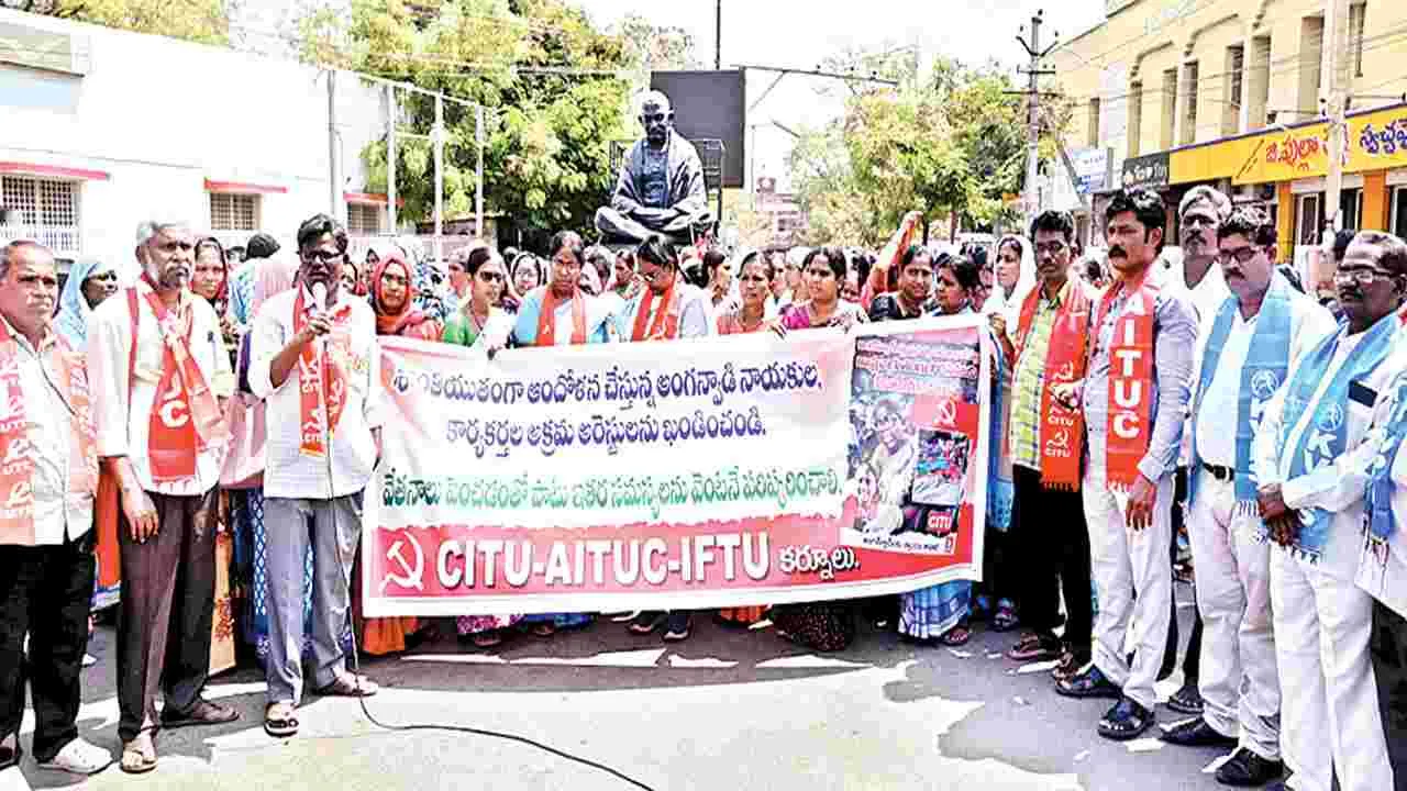 అక్రమంగా అరెస్టు చేసిన అంగన్వాడీ టీచర్లు, ఆయాలను వెంటనే విడుదల చేయాలని కార్మిక సంఘాల నాయకులు డి మాండ్ చేశారు.