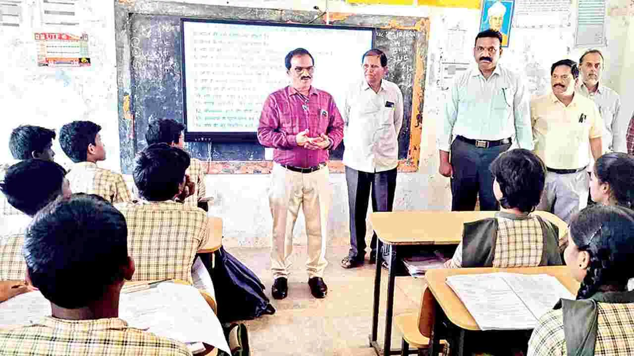 మిడుతూరు, మార్చి 4(ఆంధ్రజ్యోతి): విద్యతోనే ఉజ్వల భవిష్యత్తు ఉంటుందని డీఈవో జనార్దన్ రెడ్డి అన్నారు. మిడుతూరు లోని జడ్పీ హైస్కూల్ను బుధవారం ఆయన పరిశీలించారు. ముందు గా ఉపాధ్యాయులతో ఏర్పాటు చేసిన సమావేశంలో డీఈవో మాట్లాడుతూ.. పదో తరగతి పరీక్షల్లో విద్యార్థులు వందశాతం ఉత్తీర్ణత సాధించేలా ఉపాధ్యాయులు కృషి చేయాలని సూచించారు. చదువులో వెనుకబడిన విద్యార్థులను గుర్తించి వారిపై ప్రత్యేక దృష్టి సారించాలన్నారు. విద్యార్థులకు ఉదయం, సాయంత్రం వేళల్లో క్రమం తప్పకుండా ప్రత్యేక తరగతులు నిర్వహించాలని సూచించారు. అనం తరం పదో తరగతి గదికి వెళ్లి విద్యార్థులతో మాట్లాడారు. ఏకాగ్రతతో చదివి మంచి మార్కులు సాధించాలని, ఉన్నత స్థాయికి చేరుకోవాలని సూచించారు. కార్యక్రమంలో ఎంఈవో మల్లికార్జున నాయక్, మిడుతూరు, చెరుకుచెర్ల జడ్పీ ఉన్నత పాఠశాలల హెచ్ఎంలు సాయితిమ్మయ్య, ఉమాశంకర్, ఉపాధ్యాయులు పాల్గొన్నారు.
