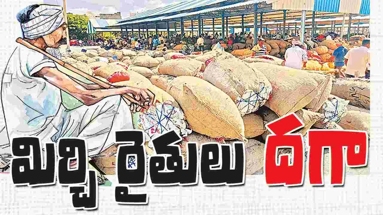 ఉమ్మడి కర్నూలు జిల్లాలో వర్షాలు, తుఫాన్ కారణంగా మిర్చి దిగుబడి పూర్తిగా తగ్గిపోయి రైతులకు భారీ నష్టపోయారు. ఎకరాకు పది క్వింటాళ్ల దిగుబడి రావాల్సి ఉండింది. నల్లి, తామర తదితర తెగుళ్లు, కీటకాల కారణంగా కేవలం 3 నుంచి 4 క్వింటాళ్ల దిగుబడి మాత్రమే అందింది. కర్నూలు మిర్చి యార్డుకు ఎండుమిర్చిని అమ్మకానికి తీసుకొస్తే వ్యాపారులు, అధికారులు కుమ్మక్కయి రైతులు నిండా ముంచుతున్నారు. ఒక ఎకరా మిర్చి సాగుకు దాదాపు రూ.1లక్ష పైగానే ఖర్చు పెట్టి నష్టాలపాలవుతున్నామని రైతులు తెలిపారు.