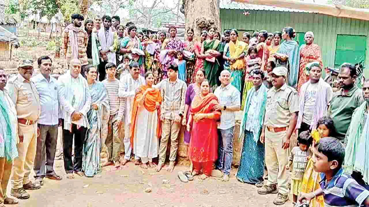 శ్రీశైలం, ఏప్రిల్ 8(ఆంధ్రజ్యోతి): శ్రీశైల దేవస్థానం అనుబంధ దేవాలయమైన ఇష్టకామేశ్వరి అమ్మవారి ఆలయ పరిసరాలలో ఉండే గిరిజన మహిళలకు తెలంగాణకు చెందిన భక్తులు చీరలు అందజేశారు. బుధవారం హైదరాబాద్కు చెందిన గౌడ్ కుటుంబసభ్యులు అటవీశాఖ అధికారుల అనుమతితో అటవీ ప్రాంతంలో ఉన్న ఇష్టకామేశ్వరి అమ్మవారి ఆలయాన్ని దర్శించుకుని అక్కడ ఉండే గిరిజన మహిళలకు చీరలు, యువకులకు కండువాలు పంపిణీ చేసినట్లు ఆదివాసీ చెంచు గిరిజన సంక్షేమ సంఘం అధ్యక్షుడు ఆశీర్వాదం తెలిపారు. కార్యక్రమంలో ఈటీడీఏ అధ్యక్షుడు గురవయ్య, చిన్నోడు, నాగరాజు, వినయ్తో పాటు అటవీశాఖ అధికారులు పాల్గొన్నారు.