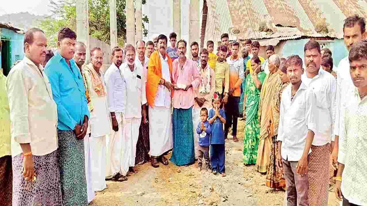 కోసిగి, జనవరి 1 (ఆంధ్రజ్యోతి): కోసిగిలోని 3వ వార్డు వాల్మీకినగర్లోని లక్ష్మీనరసింహస్వామి నూతన దేవాలయ నిర్మాణానికి టీడీపీ నాయకుడు, కోసిగి మేజర్ గ్రామ పంచాయతీ మాజీ సర్పంచ్ ముత్తురెడ్డి రూ.50 వేలు విరాళాన్ని ఆలయ కమిటీ పెద్దలు హంపయ్య, లక్ష్మన్న, బసయ్యకు అందజేశారు. ముత్తురెడ్డి మాట్లాడుతూ దేవాలయాల అభివృద్ధికి తన వంతు కృషి చేస్తానని అన్నారు. కోసిగి గ్రామాభివృద్ధే తన ధ్యేయమని తెలిపారు. అనంతరం ముత్తురెడ్డికి వాల్మీకినగర్ కాలనీవాసులు పూలమాలలు, శాలువలతో సన్మానించారు. కార్యక్రమంలో టీడీపీ నాయకులు హుశేనీ, ఈరయ్య, హనుమంతు, నరసన్న, రామాంజనేయులు, తదితరులు ఉన్నారు.
