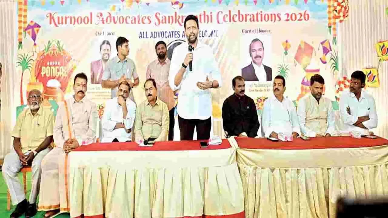 కర్నూలు లీగల్, జనవరి 11 (ఆంధ్రజ్యోతి): కర్నూలులోనే హైకోర్టు బెంచ్ ఏర్పాటుచేస్తున్నట్లు రాష్ట్ర పరిశ్రమల శాఖ మంత్రి టీజీ భరత్ స్పష్టీకరించారు. ఆదివారం నగరంలోని నరసింహారెడ్డి నగర్లో ఓ ఫంక్షన్హాలులో జరిగిన న్యాయవాదుల సంక్రాంతి సంబరాలకు ఆయన ముఖ్యఅతిథిగా హాజరై మాట్లాడారు. కర్నూలులో న్యాయవాదుల సమస్యల పరిష్కారం కోసం కృషి చేస్తున్నామన్నారు. హైకోర్టు బెంచ్ కర్నూలు నగరంలోనే ఏర్పాటుచేసేందుకు సీఎం చంద్రబాబునాయుడు, ఐటీ, విద్యాశాఖ మంత్రి నారా లోకేశ్ సుముఖంగా ఉన్నారన్నారు. ఈ హైకోర్టు బెంచ్ను ఏ, బీ, సీ క్యాంపుల్లో ఏర్పాటుచేసేందుకు ప్రతి పా దనలు పంపినట్లు ఆయన తెలిపారు. హైకోర్టు బెంచ్ ఏర్పాటు ఆషామాషీ కాదని, ఆప్రతిపాదనలు కార్యరూపం దాల్చేందుకు ప్రక్రియలు పూర్తి చేయాల్సి ఉంటుందన్నారు. హైకోర్టు బెంచ్తో పాటు నగరంలోనే నూతన కలెక్టరేట్ నిర్మాణం కూడా చేస్తామని అన్నారు. వైసీపీ నాయకులు తిరుమలలో మద్యం బాటిళ్ల పేరుతో కుట్రలు చేస్తుందని, ఆధునిక టెక్నాలజీని ఉపయోగించి ప్రభుత్వం వాస్తవాలను బయట పెడుతుందని తెలిపారు. ఇకనైనా వైసీపీ నాయకులు చిల్లర చేష్టలు మానుకోవాలని హితువు పలికారు. రానున్న బార్ కౌన్సిల్ ఎన్నికల్లో న్యాయవాదులందరూ సంఘటితమై టీడీపీ బలపరిచిన యలమంచి బాలాజీని అత్యధిక మెజారీటీతో గెలిపించాలని ఆయన న్యాయవాదులను కోరారు. వివిధ కోర్టుల్లో పబ్లిక్ ప్రాసిక్యూటర్లుగా ఇటీవలే నియమింపబడిన జీపీ, ఏజీపీలను ఘనంగా సన్మానించారు. కార్యక్రమంలో బొందిలి కార్పొరేషన్ చైర్మన్ విక్రమ్ సింగ్, టీడీపీ లీగల్ సెల్ జిల్లా అధ్యక్షుడు కేఈ జగదీష్, టీడీపీ లీగల్ సెల్ రాష్ట్ర కార్యదర్శి రాజేంద్ర ప్రసాద్, కర్నూలు బార్ అసోసియేషన్ అధ్యక్షులు హరినాథ చౌదరి, ప్రధాన కార్యదర్శి వెంకటేశ్వర్లు, ఎడ్యుకేషన్ వెల్ఫేర్ ఇన్ఫ్రా స్ట్రక్చర్ కార్పొరేషన్ డైరెక్టర్ రాఘవేంద్ర, బీజేపీ లీగల్ సెల్ నాయకులు లోకేశ్వరయ్య, టీడీపీ లీగల్ సెల్ జిల్లా ఉపాద్యక్షుడు గణేష్ సింగ్ పాల్గొన్నారు.