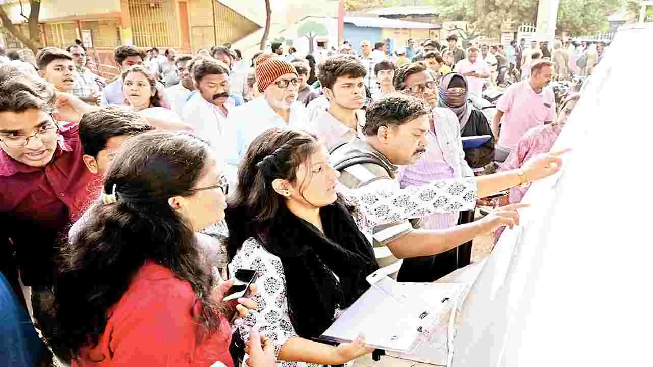 అరగంట ముందే చేరుకున్న విద్యార్థులు, తల్లిదండ్రులు..