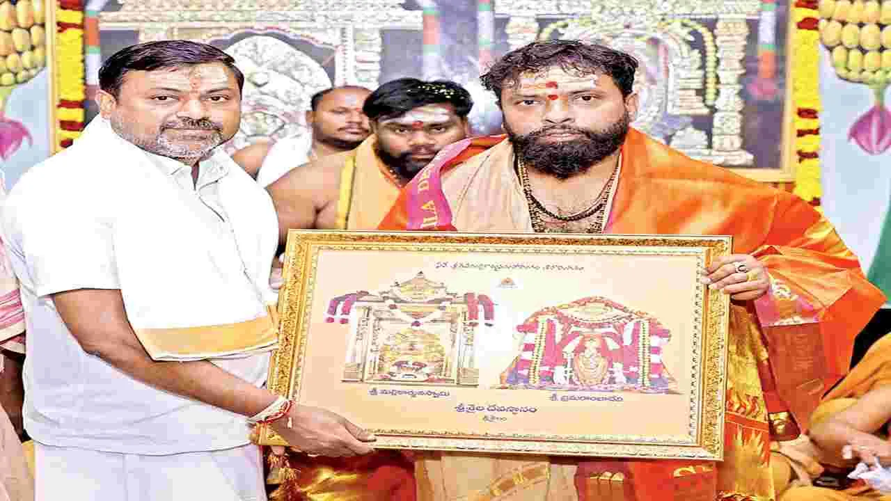 శ్రీశైలం, ఫిబ్రవరి 21 (ఆంధ్రజ్యోతి): భ్రమరాంబ మల్లికార్జున స్వామి అమ్మవార్లను రాష్ట్ర కార్మిక, కర్మాగార శాఖ మంత్రి వాసంశెట్టి సుభాష్ దర్శించుకున్నారు. శనివారం తెల్లవారుజామున ఆలయ ప్రధాన గోపురం వద్దకు చేరుకున్న వీరికి అర్చక వేదపండితులు తిలకధారణ చేయగా ఏఈవో వెంకటేశ్వరరావు ఆలయ మర్యాదలతో స్వాగతం పలికారు. స్వామి, అ్మవార్లకు ప్రత్యేక పూజలు నిర్వహించారు. అమ్మవారి ప్రాకార మండపంలో వేదపండితులు ఆశీర్వదించారు. తీర్థ ప్రసాదాలతోపాటు పరిమళ విభూది, శేషవస్త్రాలు, ఙ్ఞాపికతో పాటు క్షేత్ర విశేషాలను పొందుపరిచిన శ్రీశైలం కాఫీ టేబుల్ బుక్ను వారికి అందజేశారు.