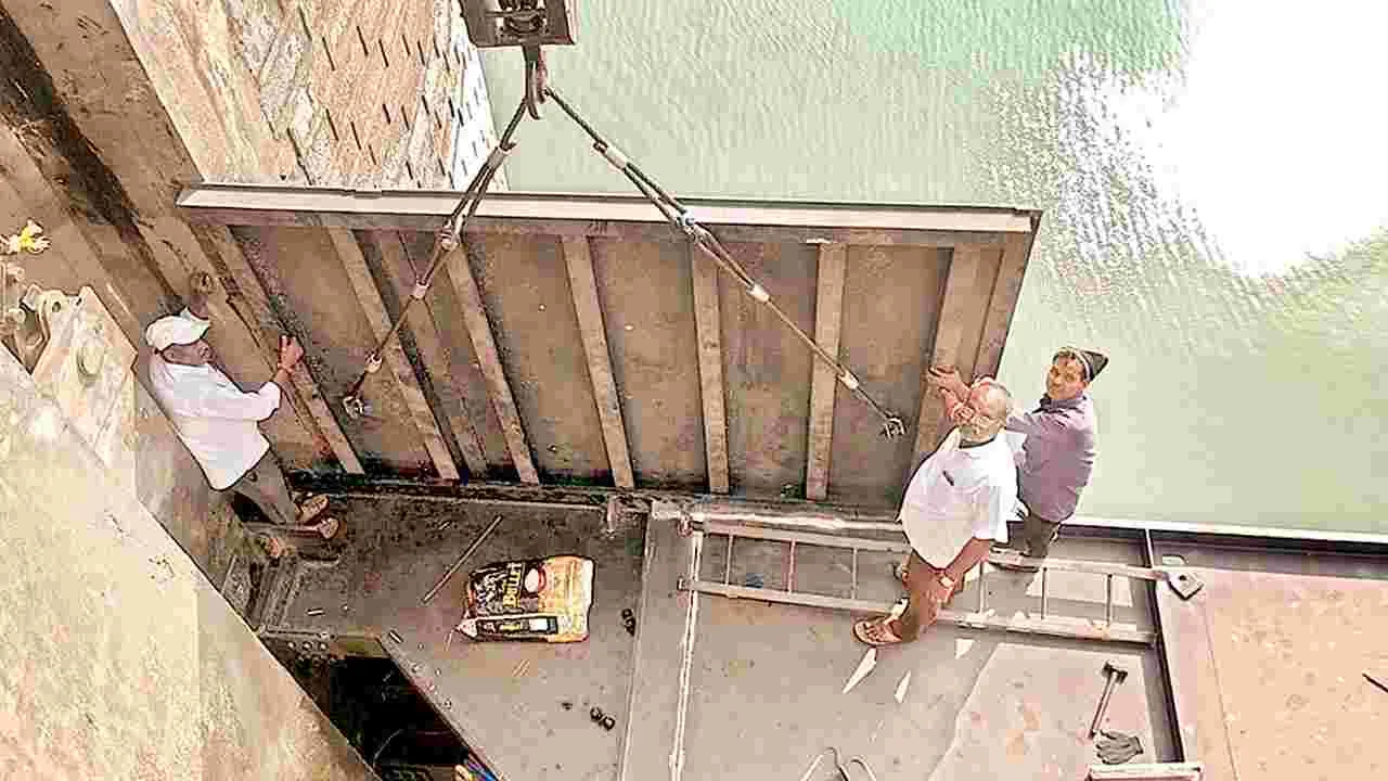 గేట్ల ఫ్యాబ్రికేషన్ 32 గేట్లు గడువులోగా పాత గేట్లు తొలగించి, కొత్త గేట్లు ఏర్పాటుకు పక్కా ప్రణాళిక రూపొందిం చారు. ఇప్పటికే 23 గేట్లు తయారీ (ఫ్యాబ్రికేషన్) పూర్తి చేయగా, మరో రెండు గేట్లు వివిధ దశల్లో ఉన్నాయి.
