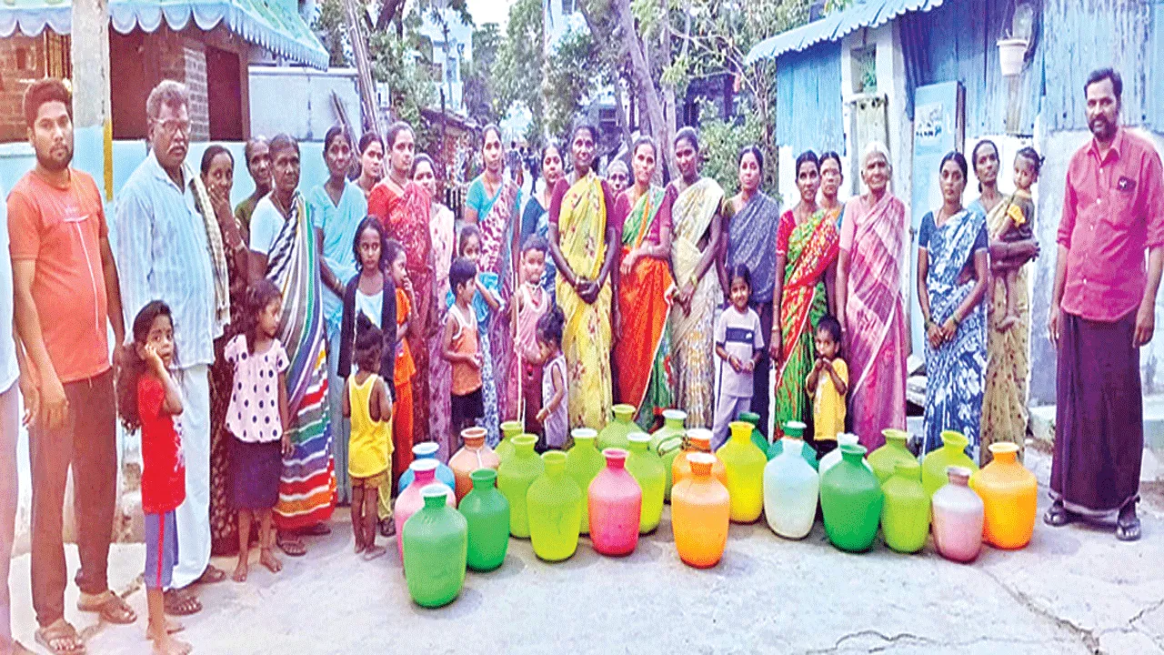 కోవెలకుంట్ల, ఏప్రిల్ 21 (ఆంధ్రజ్యోతి): పట్టణంలోని శ్రీరామ్నగర్ కాలనీకి కొద్ది రోజులుగా తాగునీరు రావడం లేదని కాలనీవాసులు ఆవేదన వ్యక్తం చేశారు. మంగళశారం మహిళలు, సానికులు ఖాళీ బిందెలతో నిరసన తెలిపారు. కాలనీలో దాదాపు 200 కుటుంబాలు ఉన్నాయని, తాగునీటి పథకం నుంచి నీరు సరిగా రావడం లేదు, రోజూ తాగునీటి కోసం ఎదురు చూడాల్సి వస్తోందని, అధికారులు స్పందించి ప్రజల కష్టాలు తీర్చాలని కోరుతున్నారు. ఈ విషయపై ఇన్చార్జి ఈవో ప్రకాష్ నాయుడును వివరణ కోరగా శ్రీరామ్నగర్లో తాగునీటి సమస్యను పరిష్కరిస్తామన్నారు. పట్టణంలో ఎక్కడైనా తాగునీరు రాకుండే ప్రజలు నేరుగా గ్రామ పంచాయతీ కార్యాలయంలో ఫిర్యాదు చేయాలని లేదా, వాట్సప్లో సమస్య తెలియజేస్తే పరిష్కరిస్తామని చెప్పారు.