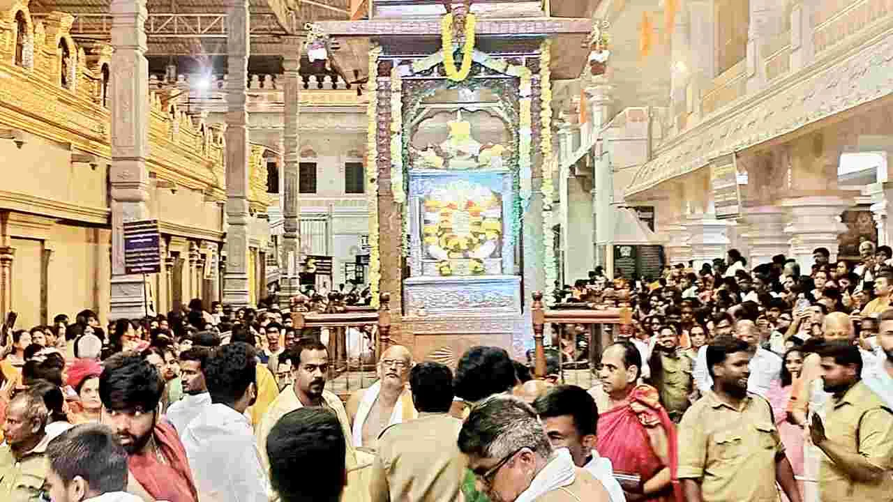 మంత్రాలయం, జనవరి 11(ఆంధ్రజ్యోతి): మంత్రాలయం రాఘవేంద్ర స్వామి మఠంలో ఉత్సవమూర్తి ప్రహ్లాదరాయలు చెక్క రథంపై విహరించారు. ఆదివారం ధనుర్మాసం అష్టమి శుభదినాన్ని పురస్కరించుకుని మఠం పీఠాధిపతి సుబుధేంద్ర తీర్థుల ఆశీస్సులతో పండితులు, అర్చకులు రాఘవేంద్రస్వామి మూల బృందావనానికి ప్రత్యేక పూజలు నిర్వహించారు. చెక్క రథంను వివిధ పుష్పాలతో చూడ ముచ్చటగా అలంకరించి, వేద పండితుల మంత్రోచ్చరణాలు, మంగళ వాయిద్యాల మధ్య వజ్రాలు పొదిగిన ప్రహ్లాదరాయలను అధిష్ఠించి ఆలయ ప్రాంగణం చుట్టూ ఊరేగించారు. అనంతరం ఊంజల మంటపంలో ఊంజలసేవ నిర్వహించారు. అంతక ముందు స్వామికి పాదపూజ చేసి పల్లకిలో ఊరేగించి హారతులు ఇచ్చారు.