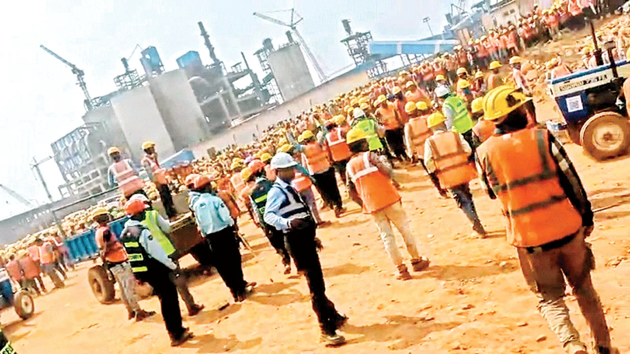 కొలిమిగుండ్ల, మార్చి 17 (ఆంధ్రజ్యోతి): మండలంలోని పెట్నీకోట పరిధిలో నిర్మితమవుతున్న అలా్ట్రటెక్ పరిశ్రమలో ఉద్రిక్తత నెలకొంది. పనికి తగ్గ వేతనం ఇవ్వడం లేదంటూ పరిశ్రమలో పని చేస్తున్న వేలాది మంది కార్మికులు మంగళవారం నిరసన చేపట్టారు. పరిశ్రమ నిర్మాణ పనులు పూర్తిగా ఆగిపోయాయి. వేతనాలు చెల్లించాలం టూ కార్మికులను అలా్ట్రటెక్ పరిశ్రమ పనులకు తీసుకవచ్చిన కాంట్రాక్టు సంస్థ కార్యాలయంపై కార్మికులు దాడికి దిగారు. బిహార్, చత్తీ్సగడ్, జార్ఖండ్, పశ్చిమబెంగాల్, ఒరిస్సా రాష్ట్రాలకు చెందిన 4వేల మంది కార్మికులు కాంట్రాక్టు సంస్థల కింద పని చేస్తున్నారు. నూతన కార్మిక చట్టాల ప్రకారం కార్మికులు 8గంటలకు మించి పనులు చేస్తే అదనపు వేతనం చెల్లించాల్సి ఉంటుంది. అలా్ట్రటెక్ పరిశ్రమలో కార్మికులతో 12గంటలకు పైగా పనులు చేయించుకుంటూ అదనపు వేతనాలు చెల్లించడం లేదని కార్మికులు ఆరోపిస్తున్నారు. రెండు రోజులుగా విధుల్లోకి వెళ్లకుండా నిరసన చేస్తూ, ఘర్షణకు దిగుతున్నారు. దీంతో కొలిమిగుండ్ల సీఐ రమే్షబాబు పోలీసులతో కలిసి అలా్ట్రటెక్ పరిశ్రమకు చేరుకొని కార్మికులతో చర్చించారు. ఉద్రిక్తతలను తగ్గించడానికి లేబర్ కాలనీ నుంచి సిమెంట్ పరిశ్రమలోకి వెళ్లకుండా పోలీసులు కార్మికులను అడ్డుకుంటున్నారు. కార్మికులు తీవ్ర ఆవేదన చెందుతున్నారు. ఏక్షణాన ఏం జరుగుతుందోనని అటు పరిశ్రమ వర్గాలు, ఇటు పోలీసులు ఆందోళన చెందుతున్నారు.