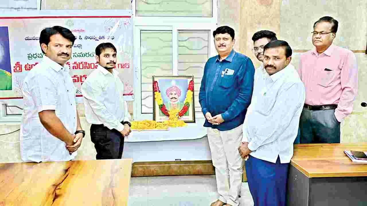 కర్నూలు కలెక్టరేట్, ఫిబ్రవరి 22 (ఆంధ్రజ్యోతి): 1857లో సిపాయిల తిరుగుబాటు కంటే ముందే బ్రిటీష్ ప్రభుత్వంపై తిరుగుబాటు చేసిన తొలి తిరుగుబాటు వీరుడు ఉయ్యాలవాడ నర సింహారెడ్డి అని జేసీ నూరుల్ ఖమర్ అన్నారు. ఆదివారం నర సింహా రెడ్డి వర్ధంతిని పురస్కరించుకొని జేసీతో పాటు సెట్కూరు సీఈవో వేణుగోపాల్, జిల్లా టూరిజం అధికారి లక్ష్మీనారాయణ నరసింహారెడ్డి చిత్రపటానికి పూలమాలలు వేసి నివాళులర్పించారు. జేసీ మాట్లా డుతూ ఆయన త్యాగం, దేశభక్తి, ఆత్మగౌరవ పోరాటం భారత స్వాతంత్య్ర చరిత్రలో చిరస్మరణీయమన్నారు. ఆంధ్రప్రదేశ్ రాష్ట్ర ప్రభుత్వం ఓర్వకల్లులోని కొత్త విమానాశ్రయానికి ఆయన పేరు పెట్టడం ద్వారా ఆయన వారసత్వాన్ని గౌరవించిందని తెలిపారు.