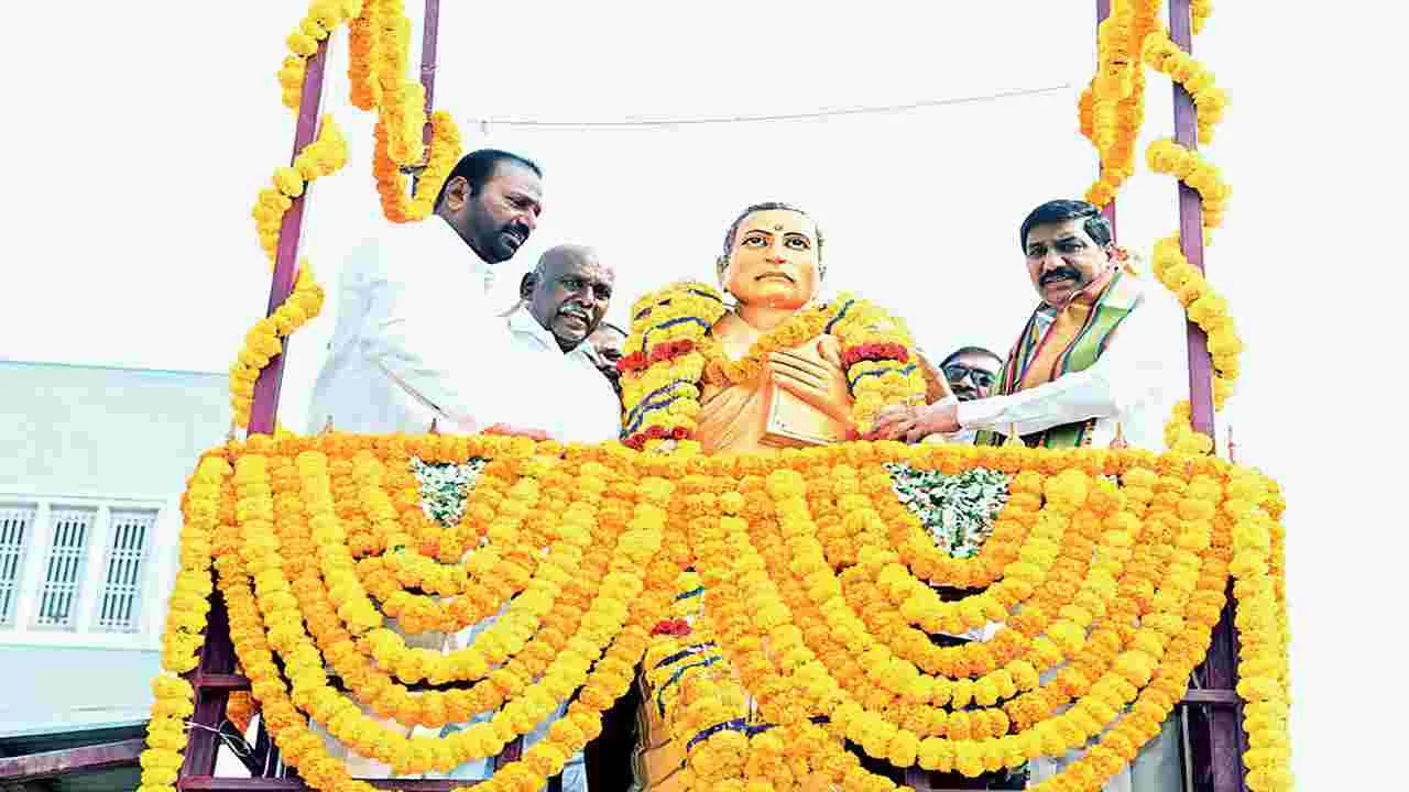బనగానపల్లె, మార్చి 16 (ఆంధ్రజ్యోతి): అమరజీవి పొట్టి శ్రీరాములు ఆశయాలను, సేవలను మరువరాదని రోడ్లు భవనాల శాఖామంత్రి బీసీ జనార్దన్రెడ్డి అన్నారు. సోమవారం బనగానపల్లె పట్టణం పాతబస్టాండ్లోని పొట్టి శ్రీరాములు విగ్రహానికి మంత్రి బీసీ జనార్దన్రెడ్డి, టంగుటూరు శ్రీనయ్య, గాథంశెట్టి వేణుగోపాల్, శ్రీరామ వెంకట సుబ్రమణ్యం తదితరులు పొట్టి శ్రీరాములు విగ్రహానికి పూలమాలలు వేసి క్షీరాభిషేకం చేశారు. మంత్రి బీసీ మాట్లాడుతూ ఒకప్పుడు ఆనాటి ఉమ్మడి మద్రాస్ రాష్ట్రంలో తెలుగువారికి ఏమాత్రం గౌరవం లేని పరిస్థితుల్లో ప్రత్యేక ఆంధ్రరాష్ట్రం కోసం పొట్టి శ్రీరాములు 58 రోజులు ఆమరణ నిరాహారదీక్షతో ప్రాణ త్యాగం చేశారని అన్నారు. ఈ కార్యక్రమంలో ఆర్యవైశ్య సంఘం పట్టణ శాశ్వత అధ్యక్షుడు పీఎస్ఎస్ నారాయణ, పారిశ్రామికవేత్త గాలి మద్దిలేటిరెడ్డి, జక్కా శ్రవణ్ తదితరులు పాల్గొన్నారు.