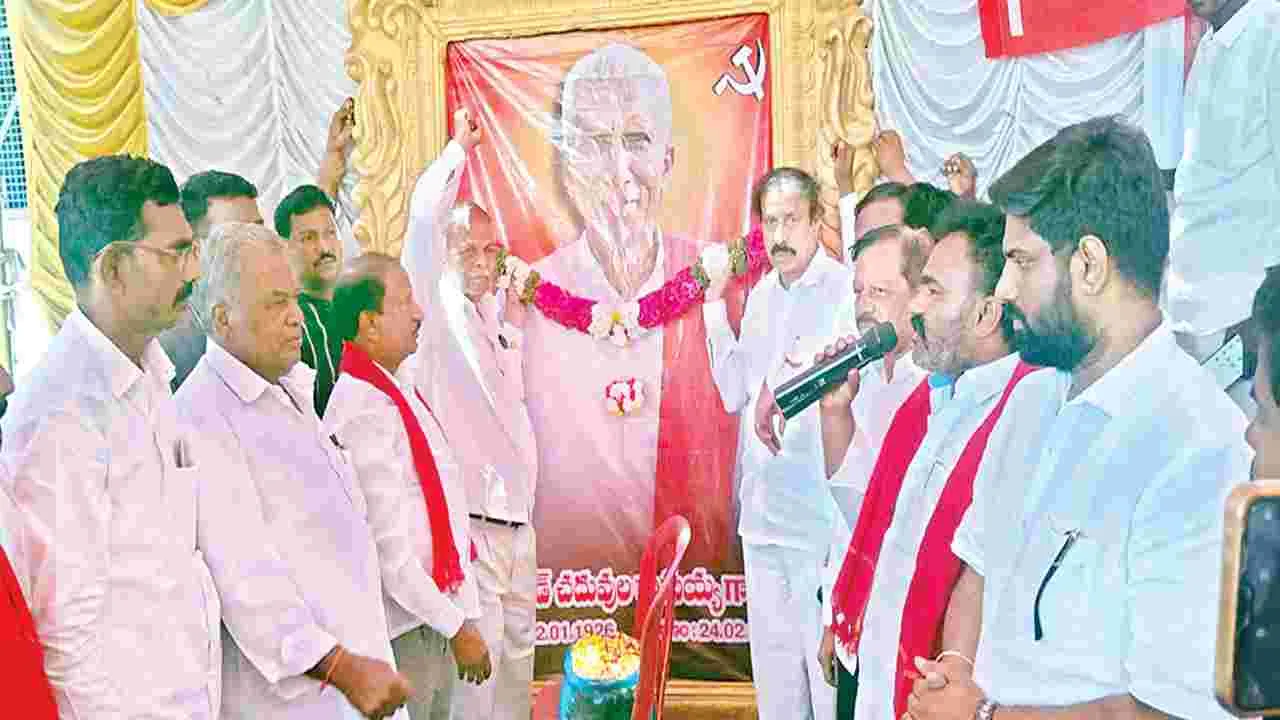 పత్తికొండ టౌన్, ఏప్రిల్ 9 (ఆంధ్రజ్యోతి): దేశంలో రాజ్యాంగ వ్య వస్థలు చిన్నాభిన్నం అయ్యాయని, ప్రస్తుతం రాజకీయాల్లో మార్పు రావాల్సిన అవసరం ఎంతైనా ఉందని సీపీఐ జాతీయ కార్యదర్శి రామకృష్ణ అభిప్రాయపడ్డారు. పత్తికొండ పట్టణంలో గురువారం సీపీఐ పూర్వపు జిల్లా కార్యదర్శి చదువుల రామయ్య శత జయంతి ఉత్సవాలు ప్రారంభమయ్యాయి. ఈకార్యక్రమానికి ముఖ్యఅతిథిగా హాజరైన జాతీయ కార్యదర్శి కె.రామకృష్ణ, రాష్ట్ర కార్యవర్గ సభ్యులు రామచంద్రయ్య పూలమాలలు వేసి నివాళులర్పించారు. అనంతరం కూరగాయల మార్కెట్ ఆవరణలో జరిగిన బహిరంగ సభలో రామకృష్ణ మాట్లాడుతూ ప్రస్తుతం రాజకీయాలు భ్రష్టు పట్టాయని, కేవలం డబ్బున్న వారే రాజకీయాల్లో రాణిస్తున్నారన్నారు. రాజకీయాల్లో మార్పు రావాలంటే ప్రజలను చైతన్యం చేయాల్సిన అవసరం ఎంతైనా ఉందన్నారు. చదువుల రామయ్య లాంటి ఎందరో నాయకులు పార్టీ జెండాను దించకుండా తుదిశ్వాస వరకు పేదల పక్షాన పోరాడి అమరులయ్యారన్నారు. చదువుల రామయ్య కర్నూలు జిల్లాలో అట్టడుగువర్గాలు, హరిజన, గిరిజనుల సంక్షేమం కోసం పోరాడిన గొప్పనేత చదువుల రామయ్య అని తెలిపారు. ఆయన స్ఫూర్తిగా ముందుకెళ్లాలని పి లుపునిచ్చారు. సీపీఐ జిల్లా కార్యదర్శి గిడ్డయ్య మాట్లాడుతూ పోరాటాల్లో ప్రజలు భాగస్వాములు కావాలన్నారు. ఈ కార్యక్రమంలో రాష్ట్ర కార్యదర్శివర్గ సభ్యులు రామాంజనేయులు, కాంగ్రెస్ పార్టీ జిల్లా అధ్యక్షుడు క్రాంతినాయుడు, మాజీ ఎంపీపీ గురుస్వామి, వ్యవసాయ కార్మిక సంఘం రాష్ట్ర అధ్యక్షుడు శేఖర్, వైసీపీ నాయకుడు సోమశేఖర్, సీపీఐ మండల కార్యదర్శి కారుమంచి, నాయకులు భాస్కర్రెడ్డి, వెంకటేశ్వర్రెడ్డి, రాజాసాహెబ్, లెనిన్, సుల్తాన్, జగన్నాథం, మునెప్ప, శ్రీనివాసులు, గిడ్డమ్మ, శ్రావణి తదితరులు పాల్గొన్నారు.