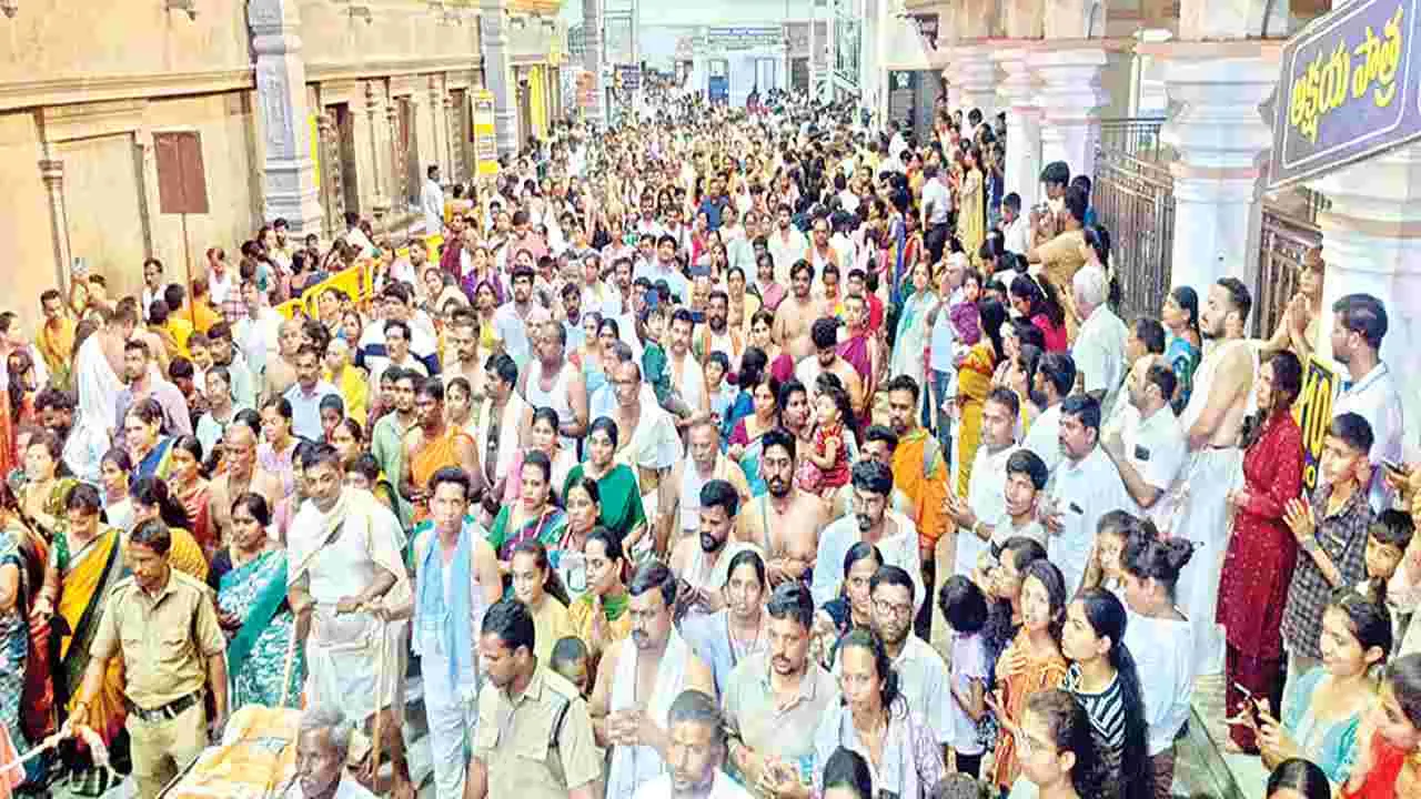 రాఘవేంద్ర స్వామి దర్శనార్థం వచ్చిన భక్తులతో మంత్రాలయం పోటెత్తింది.