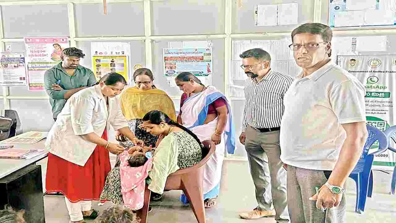 నగరంలోని శ్రీరామ్నగర్ అర్బన్ హెల్త్ సెంటర్లో అమలు అవుతున్న వ్యాధి నిరోధక టీకాల కార్యక్రమాన్ని డిస్ట్రిక్ట్ ఇమ్యునైజేషన్ ఆఫీసర్ డాక్టర్ ఉమ తనిఖీ చేశారు.