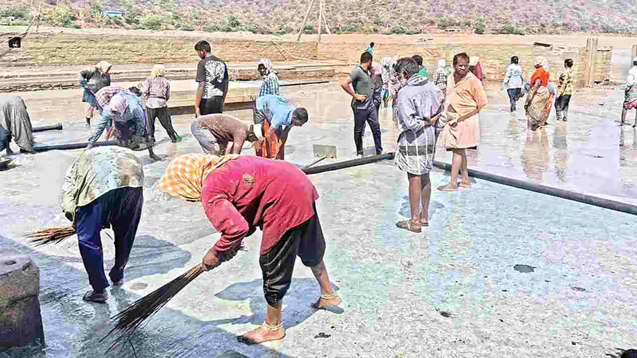 కొత్తపల్లి, మార్చి 22 (ఆంధ్రజ్యోతి): ఎనిమిది నెలలుగా సప్తనది జలాల్లో నిక్షిప్తమైన సంగమేశ్వరస్వామి ఆలయం శని వారం నాటికి పూర్తిగా బయల్పడింది. అయితే.. నీరు పూర్తిగా తగ్గినప్పటికీ గర్భాలయంతో పాటు ఆలయ ప్రాంగణంలో భారీ ఎత్తున ఒండ్రుమట్టి చేరుకుంది. ఆలయ పురోహితుడు తెలక పల్లి రఘురామశర్మ ట్రాక్టర్లు, కూలీల సహకారంతో ఆదివారం బురదను తొలగింపజేశారు. అయితే ఆలయంలో కొద్దిమేర నీరు నిల్వ ఉండటంతో ట్రాక్టర్, మోటారు ద్వారా నీటికి బయటకు పంపించారు. కొంత మేర మోటార్లు ఇబ్బంది కలిగిస్తున్నప్పటికీ అధిక సంఖ్యలో కూలీలు, భక్తుల సహకా రంతో ఆదివారం రాత్రికి బురదను తొలగించారు. ఇదిలా ఉంటే శివునికి ప్రీతికరమైన సోమవారం పర్వదినం కావడంతో వేపదారు శివలింగానికి ప్రత్యేక పూజల అనంతరం భక్తులకు దర్శనభాగ్యం కల్పిస్తామని పురోహితుడు తెలిపారు.