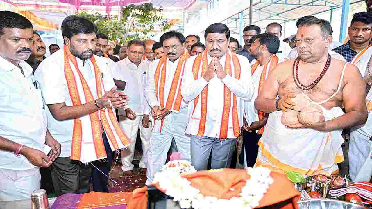 బనగానపల్లె, ఏప్రిల్ 12 (ఆంధ్రజ్యోతి): యాగంటి క్షేత్రాన్ని అభివృద్ధి చేస్తుంటే వైసీపీ నాయకులు అధికారులను బెదిరిస్తూ అడ్డుకుంటున్నారని రాష్ట్ర రోడ్లు, భవనాల శాఖ మంత్రి బీసీ జనార్ధన్ రెడ్డి అన్నారు. యాగంటి ఆలయంపై పెత ్తనం పేరుతో విధ్వంసాలు సృష్టించాలనిచూస్తే సహించేది లేదని, తాటాకు చప్పుళ్లకు భయపడే ప్రసక్తే లేదని మంత్రి ఘాటు స్పందించారు. ఆదివారం యాగంటి క్షేత్రంలో రూ.5.08 కోట్లతో నిర్మిస్తున్న వివిధ అభివృద్ధి పనులకు మంత్రి భూమి పూజ చేశారు. యాగంటి క్షేత్రంలో భక్తుల సౌకర్యార్థం రూ. 1.25 కోట్లతో 8 దుకాణాలు, 2 డార్మెటరీలు, 16 గదుల సముదాయం, రూ.3.3 కోట్ల వ్యయంతో భక్తులకు నిత్యాన్నదాన సత్రం, రూ.29లక్షలతో కొత్త లడ్డూ కౌంటర్ ఏర్పాటు, రూ.24 లక్షలతో క్యూలైన్ షెడ్ నిర్మాణం పనులకు మంత్రి బీసీ భూమి పూజ చేశారు. అనంతరం ఆయన మాట్లాడుతూ గత ప్రభుత్వంలో యాగంటి క్షేత్రానికి ఏంచేశారో ఒక్కసారి ప్రజలు ఆలోచించాలన్నారు. కూటమి ప్రభుత్వ హయంలో ఏడాది కాలంలో యాగంటి క్షేత్రానికి రూ.5.57 కోట్లు ఆదాయం వచ్చిందన్నారు. గత వైసీపీ ప్రభుత్వంలో 2021 నుంచి 24 వరకు రూ.7కోట్లు మాత్రమే వచ్చిందన్నారు. ఆ సొమ్ముకు లెక్కాపత్రం లేదన్నారు. గతంలో యాగంటి ఆలయానికి రావాల్సిన సొమ్మును ఇక్కడ పనిచేసే కొందరు భారీగా నొక్కేశారని ఆరోపించారు. శివయ్య సొమ్మును కాజేసిన ఏ ఒక్కరూ బాగుపడరన్నారు. ఆదాయానికి గండి కొట్టిన ప్రతి ఒక్కరి సంగతి తేలుస్తానన్నారు. ఆలయంలో రాజకీయాలు చేస్తున్న వ్యక్తిపై కఠిన చర్యలు తప్పవన్నారు. ఇప్పటికే సుమారు 10 ఎకరాల విస్తీర్ణంలో పార్కింగ్ స్థలం ఏర్పాటు చేశామన్నారు. వైసీపీ నేతలు పార్కింగ్ స్థలంపై కూడా పిటీషన్లు వేయడం దుర్మార్గమన్నారు. వసతి సముదాయాలు, అన్నదాన సత్రం నిర్మిస్తుంటే ఇక్కడ పనిచేసే దేవదాయశాఖ అఽధికారులను బెదిరిస్తున్నారన్నారు. కార్యక్రమంలో ఆర్డీవో నరేంద్రనాథ్రెడ్డి, ఆలయ అసిస్టెంట్ కమిషనర్ డి.పాండురంగారెడ్డి, ఆలయ చైర్మన్ బండి మౌళీశ్వరరెడ్డి, తహసీల్దార్ పవన్కుమార్రెడ్డి, ఎండోమెంట్ డీఈ శ్రీనివాసులు, టీడీపీ నాయకులు కాటసాని చంద్రశేఖర్రెడ్డి, ఆలయ మాజీ చైర్మన్ బత్తుల బాలిరెడ్డి, మాజీ సర్పంచ్ మహేశ్వరరెడ్డి, బురానుద్దీన్, భూషన్న, దస్తగిరి, నాగరాజు, జనసేన భాస్కర్, పాలకవర్గ సభ్యులు తిరుమలయ్య, శ్రీరాములు, భరతుడు, సురేశ్, రామశేఖర్ పాల్గొన్నారు.