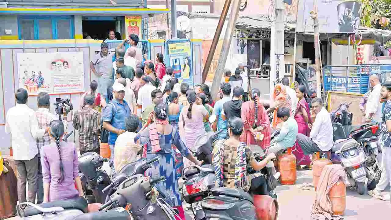 ఎల్పీజీ సిలిండర్ల కోసం బారులు