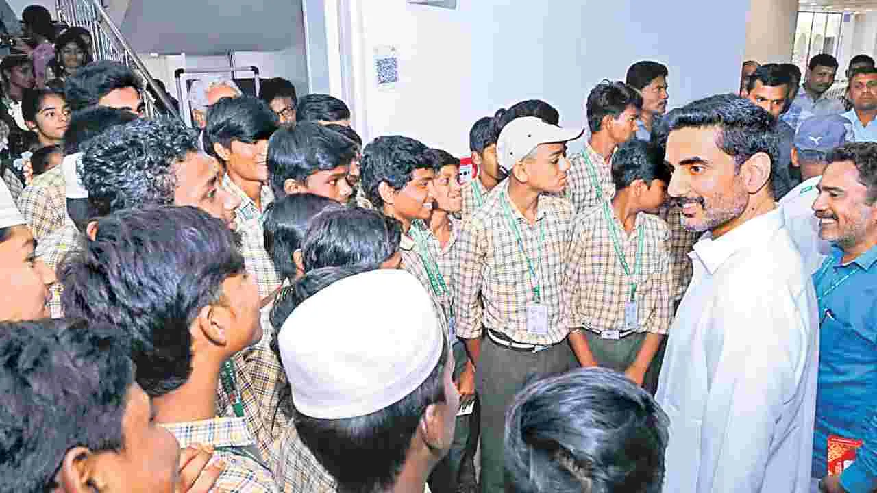 అసెంబ్లీ చూసేందుకు వచ్చిన విద్యార్థులతో లోకేశ్