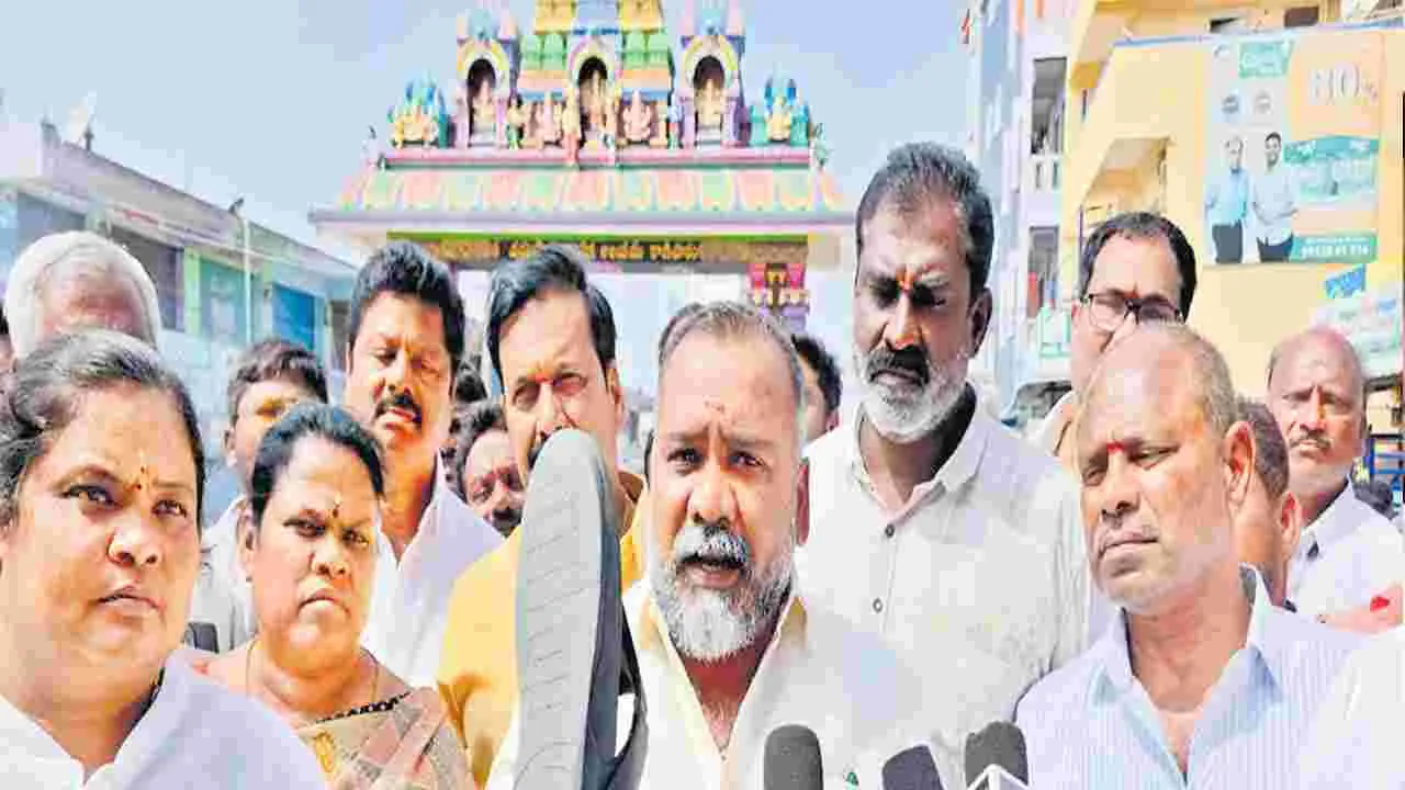 ఐరాల(కాణిపాకం), ఫిబ్రవరి 1(ఆంద్రజ్యోతి): ‘సీఎం చంద్రబాబుపై అవాకులు చవాకులు పేలిన వైసీపీ నాయకుడు అంబటి రాంబాబు నోరు అదుపులో పెట్టుకుని మాట్లాడాలి. లేదంటే చెప్పుతో సమాధానం చెబుతాం’ అని చెప్పు చూపి స్తూ చిత్తూరు జిల్లా పూతలపట్టు ఎమ్మెల్యే మురళీమోహన్ హెచ్చరించారు. కాణిపాకం ఆర్చి వద్ద ఆదివారం అంబటి దిష్టిబొమ్మను దహనం చేసిన కార్యక్రమంలో ఆయన మాట్లాడారు. ‘తిరుమల లడ్డూలో నెయ్యి కల్తీ విషయాన్ని ప్రజలు మరిచి పోవాలని ఇలాంటి మాటలను అంబటి మాట్లాడారు. ప్రజలు అన్ని విషయాలను గమనిస్తున్నారు. వైసీపీ వాళ్లు ఎన్ని ప్రయత్నాలు చేసిన లడ్డూ కల్తీ విషయాన్ని పక్కదోవ పట్టించలేరు’ అని మురళీ మోహన్ అన్నారు.