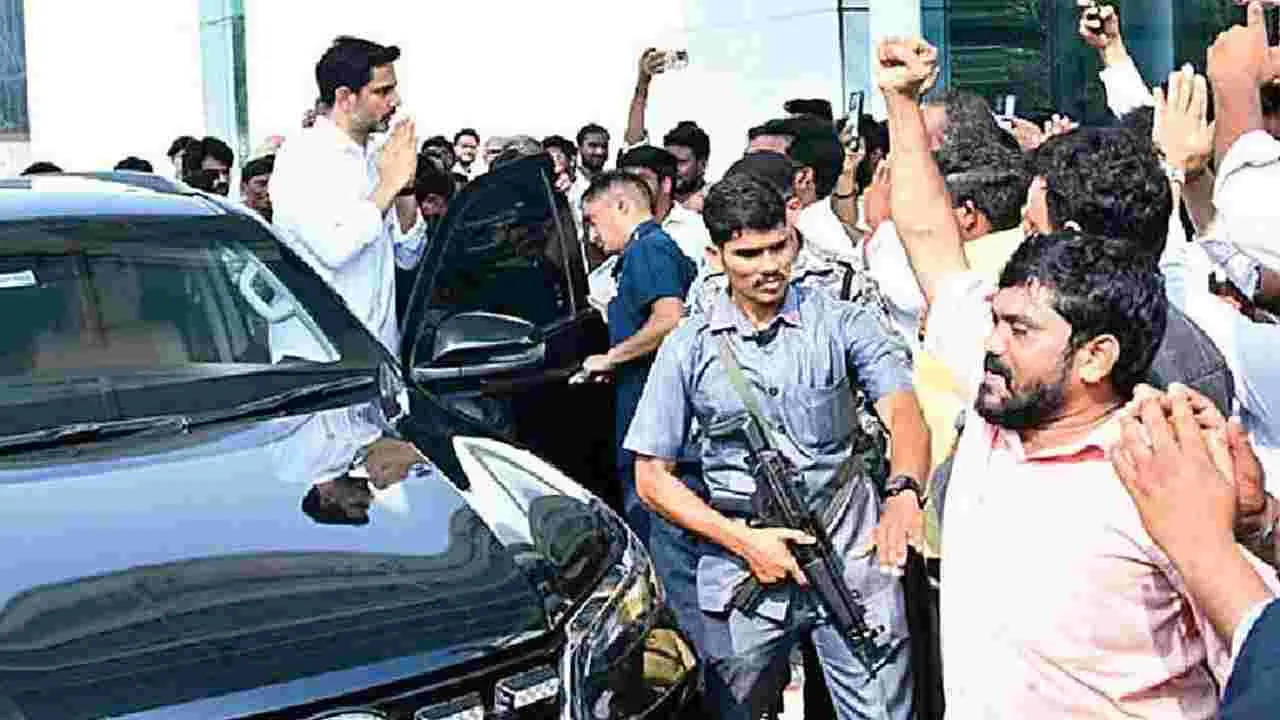 తిరుపతి, ఏప్రిల్ 14(ఆంద్రజ్యోతి): మంత్రి లోకేశ్ మంగళవారం రాత్రి తిరుపతి చేరుకున్నారు. ఆయనకు విమానాశ్రయంలో ఘన స్వాగతం లభించింది. రాత్రి 10 గంటలకు లోకేశ్ ఎయిర్పోర్టు చేరుకోగా... అప్పటికే ఆయనకు స్వాగతం పలికేందుకు నాయకులతో పాటు విమానాశ్రయం వెలుపల భారీగా పార్టీ శ్రేణులు చేరుకున్నాయి. 200 మందికి మాత్రమే పాసులు జారీ చేయడంతో పాసులు లేని వారిని లోనికి అనుమతించలేదు. దీంతో టీడీపీ శ్రేణులు భద్రతా సిబ్బందితో వాగ్వాదానికి దిగారు. విమానాశ్రయ అధికారుల జోక్యంతో కార్యకర్తలు శాంతించారు. మంత్రి లోకేశ్ బుధవారం తిరుపతి, చంద్రగిరిల్లో క్రీడా సముదాయాలను ప్రారంభిస్తారు.