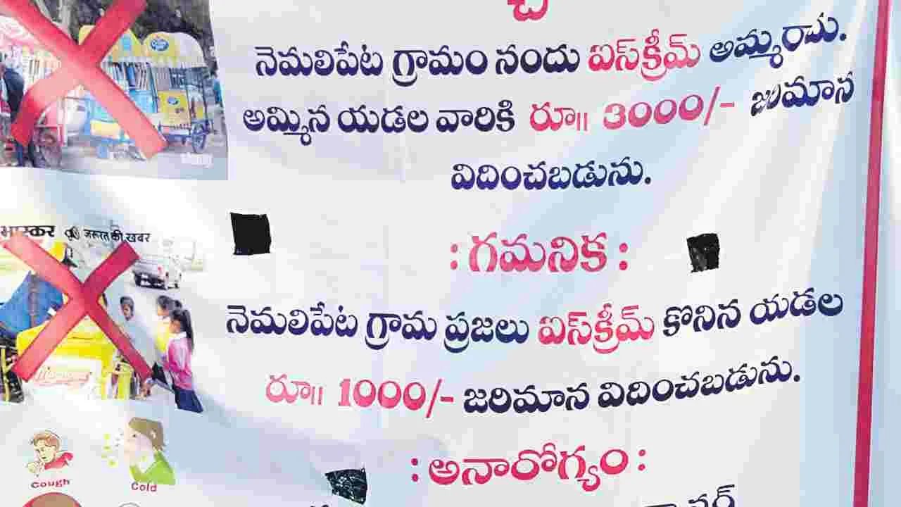 ఏలూరు జిల్లా కుక్కునూరు మండలం నెమలిపేట గిరిజనులు తమ పిల్లల ఆరోగ్యం దృష్ట్యా ఐస్క్రీమ్ అమ్మకాలపై నిషేధం విధించారు.