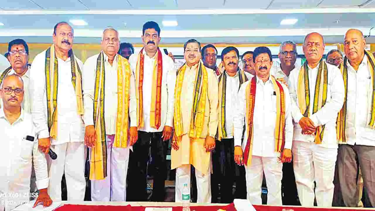 విజయవాడ (గవర్నర్పేట), మార్చి 8 (ఆంధ్రజ్యోతి): స్థానిక సంస్థల ఎన్నికల్లో అన్ని రాజకీయ పార్టీలు తమ సామాజికవర్గానికి ఎక్కువ సీట్లు కేటాయించి రాజకీయ ప్రాధాన్యం కల్పించాలని పద్మశాలి సంక్షేమ సంఘం రాష్ట్ర అధ్యక్షుడు జీవీ నాగేశ్వరరావు కోరారు. విజయవాడలోని ఎంబీవీకేలో ఆదివారం సంఘం రాష్ట్ర నూతన కమిటీ ప్రమాణ స్వీకారం జరిగింది. అధ్యక్షుడిగా జీవీ నాగేశ్వరరావు, ప్రధాన కార్యదర్శిగా అందె జగదీశ్, ఉపాధ్యక్షుడిగా బల్ల పరమేశ్వరరావు, మహిళా విభాగం అధ్యక్షురాలిగా జేరుబండి శ్యామల, చేనేత విభాగం ప్రతినిధిగా జక్కా చినసింగరయ్య, యువజన విభాగం అధ్యక్షుడిగా సప్పా మణికంఠతో పాటు మిగిలిన కమిటీ పాలకవర్గం సభ్యులు ప్రమాణస్వీకారం చేశారు. ఈ సందర్భంగా నాగేశ్వరరావు మాట్లాడుతూ రాజకీయ ప్రాధాన్యం ద్వారానే సామాజిక వర్గాలు అన్ని రంగాల్లో ముందుకువెళ్లాయని తెలిపారు. అన్ని రాజకీయ పార్టీలు పద్మశాలీలను ఓటు బ్యాంకుగానే చూస్తున్నాయని ఆవేదన వ్యక్తం చేశారు. పద్మశాలీ యువత విద్యలో రాణించడం ద్వారా సామాజికవర్గానికి అండగా నిలవాలని కోరారు. ప్రమాణ స్వీకార కార్యక్రమానికి సంఘం జాతీయ అధ్యక్షుడు కందగట్ట స్వామి, ఉపాధ్యక్షుడు జింక రామాంజనేయులు, వర్కింగ్ ప్రెసిడెంట్ భీమనపల్లి వెంకట సుబ్బయ్య, అనుబంధ సంఘాల నేతలు కొప్పుల రమేశ్, వద్ది నరసింహులు, గడ్డం జగన్నాథం, కొంగతి లక్ష్మీనారాయణ తదితరులు పాల్గొన్నారు.