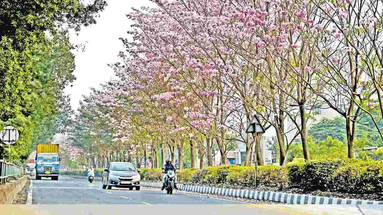 ఇంటర్నెట్ డెస్క్: గులాబీ వర్ణంలో అరవిరిసిన పూలతో ఈ పింక్ ట్రంపెట్ చెట్లు విశాఖ నగరవాసులను మైమరిపిస్తున్నాయి. నగర పరిధిలోని షీలానగర్ నుంచి గాజువాక వెళ్లే మార్గంలో ఈ చెట్లకు పూసిన పూలు వాహనచోదకులకు కనువిందు చేస్తున్నాయి. జాతీయ రహదారిపై మధ్యలో నాటిన పింక్ ట్రంపెట్ చెట్లన్నీ పెరిగి పెద్దవై పూలు పూస్తున్నాయి. దాంతో ఈ మార్గం సరికొత్తగా, ఆకర్షణీయంగా కనిపిస్తోంది.