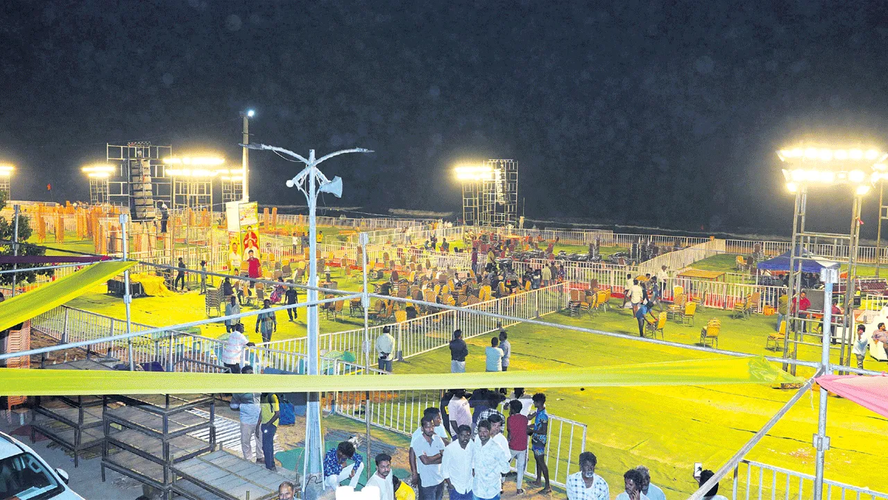 రెండు కిలోమీటర్ల విస్తీర్ణంలో భారీ ఏర్పాట్లు
