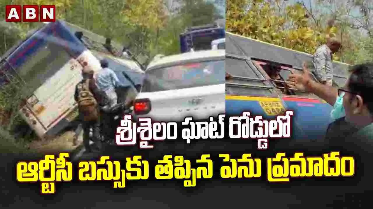శ్రీశైలం ఘాట్ రోడ్డులో ఆర్టీసీ బస్సుకు తప్పిన పెను ప్రమాదం