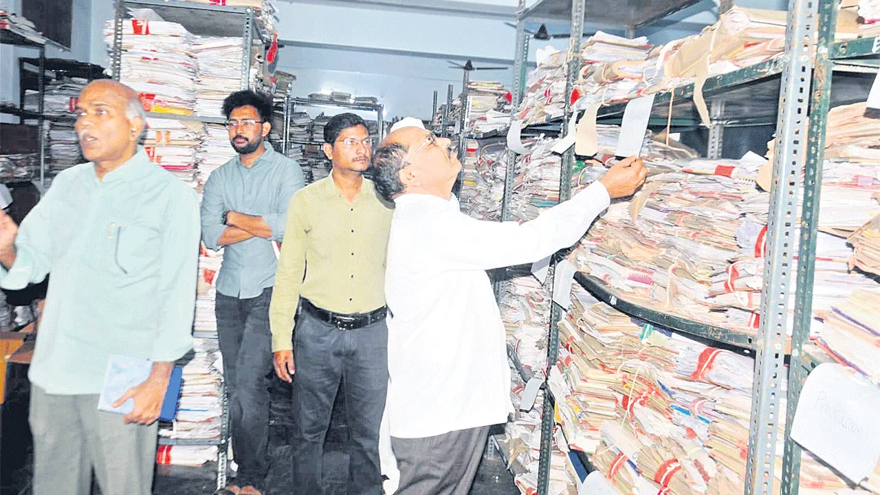 రెవెన్యూ రికార్డులను స్కాన్ చేస్తున్న ఉద్యోగులు