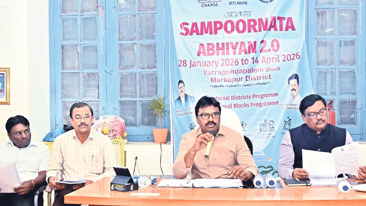 ఎర్రగొండపాలెం నియోజకవర్గంలోని ప్రజల జీవన ప్రమాణాల మెరుగుకు కృషి చేయాలని జిల్లా ఇన్చార్జి కలెక్టర్ పి.రాజాబాబు అఽధికారులను ఆదేశించారు. దేశవ్యాప్తంగా కేంద్ర ప్రభుత్వం నీతి ఆయోగ్ ద్వారా పలు రంగాల్లో అభివృద్ధి చేసేందుకు రాష్ట్రంలో ఎంపిక చేసిన 15 మండలాల్లో ఎర్రగొండపాలెం మండలం ఒకటి. ఇందులో భాగంగా సంపూర్ణత అభియాన్ 2.0 కార్యక్రమం జనవరి 28 నుంచి ప్రారంభమై ఏప్రిల్ 14తో ముగుస్తుందని చెప్పారు. గతేడాది వివిధ అంశాల్లో 100శాతం విజయవంతం చేసిన సందర్భంగా కేంద్రం నుంచి బంగారు పతకం సాధించిన విషయాన్ని ఆయన గుర్తు చేశారు. అదే స్ఫూర్తితో ఈ విడత కార్యక్రమాన్ని కూడా విజయవంతం చేసేందుకు ప్రతి ఒక్కరూ కృషి చేయాలని ఆయన కోరారు. సమావేశంలో జేసీ శ్రీనివాసులు, టీడీపీ ఇన్చార్జి గూడూరి ఎరిక్షన్బాబు, నోడల్ అధికారి ఎంపీడీవో శ్రీనివాసులు పాల్గొన్నారు.