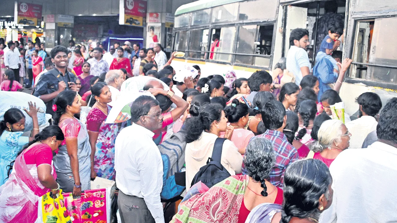 కిటకిటలాడుతున్న బస్సులు, రైళ్లు