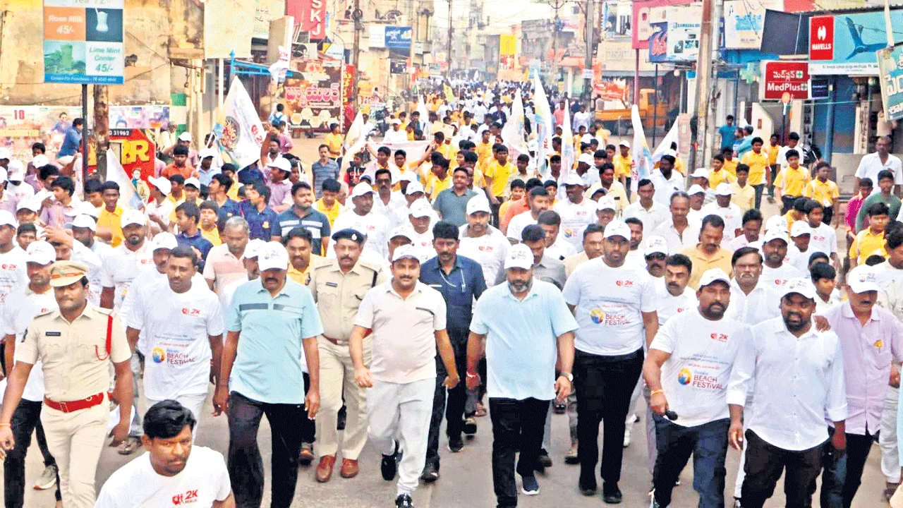 బీచ్ ఫెస్టివల్పై ప్రచారంలో భాగంగా మంగళవారం కందుకూరు, కనిగిరి, పొదిలిలలో 2కే రన్లు కోలాహలంగా సాగాయి. కనిగిరిలో వందలాది మందితో అక్కడి ఎమ్మెల్యే డాక్టర్ ముక్కు ఉగ్రనరసింహారెడ్డి సారధ్యంలో రన్ నిర్వహించారు. కలెక్టర్ రాజాబాబు, టూరిజం కార్పొరేషన్ చైర్మన్ నూకసాని బాలాజీ పాల్గొన్నారు. కందుకూరులో ఎమ్మెల్యే ఇంటూరి నాగేశ్వరరావు సారథ్యంలో 2కే రన్ ఉత్సాహంగా సాగింది. మారిటైం బోర్డు చైర్మన్ దామచర్ల సత్య, సబ్కలెక్టర్ హిమవంశీ ఇతర అధికారులు, వివిధ రంగాల వారు పాల్గొన్నారు. సాయంత్రం పొదిలిలో మార్కాపురం ఎమ్మెల్యే కందుల నారాయణరెడ్డి సారథ్యంలో 2కే రన్ చేపట్టారు. దామచర్ల సత్య, గిద్దలూరు ఎమ్మెల్యే అశోక్రెడ్డి, టీడీపీ నియోజకవర్గ ఇన్చార్జిలు ఎరిక్షన్బాబు, గొట్టిపాటి లక్ష్మితోపాటు పలువురు నేతలు, అధికారులు పాల్గొన్నారు. రాత్రి ఒంగోలులోని అద్దంకి బస్టాండు సెంటర్లో బీచ్ ఫెస్టివల్పై ఎమ్మెల్యే దామచర్ల జనార్దన్ ఆధ్వర్యంలో ప్రత్యేక కార్యక్రమాన్ని నిర్వహించారు. ఆయా ప్రాంతాల నుంచి బీచ్ ఫెస్టివల్కు వచ్చేవారికి ఉచితంగా వాహనాలు కూడా ఏర్పాటు చేస్తున్నారు.