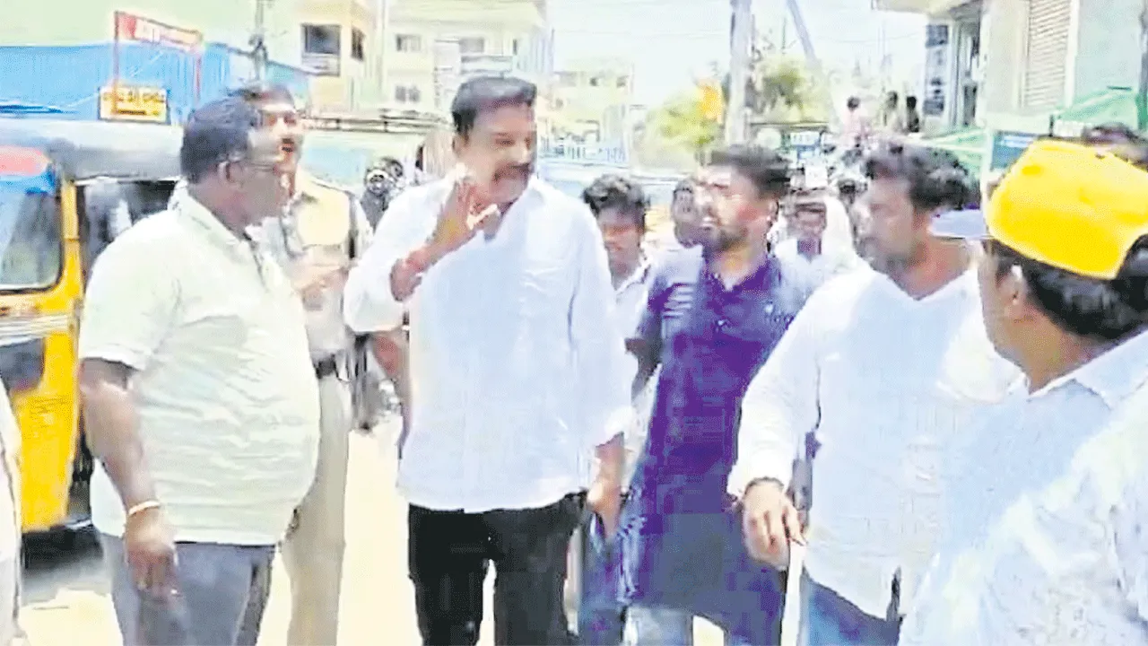 మార్కాపురం కలెక్టరేట్, ఏప్రిల్ 18 (ఆంధ్రజ్యోతి) : మార్కాపురం సమీపంలోని అల్లూరి పోలేరమ్మ ఆలయానికి దగ్గరలో విలువైన భూమిపై గిద్దలూరుకు చెందిన వైసీపీ నాయకుడి కన్ను పడింది. ఒక అగ్రిమెంట్ ఆధారంగా ఆ భూమి తనదేనని వచ్చి అక్కడ ఏర్పాటు చేసిన ప్లాట్లలోని రాళ్లను తొలగించారు. విషయం తెలుసుకున్న ప్లాట్ల యజమానులు అక్కడకు వెళ్లి వాదులాటకు దిగడంతో ఉద్రిక్త పరిస్థితి నెలకొంది. పోలీసుల జోక్యంతో సద్దుమణిగింది. వివరాల్లోకి వెళితే... మార్కాపురం మండలం నర్సింహాపురం ఇలాకాలో సర్వే నెంబరు 1/ఏలో ఉన్న 12 ఎకరాల భూమిలో రియల్ ఎస్టేట్ వ్యాపారులు వెంచర్ వేశారు. అందులోని ప్లాట్లను 240 మంది కొనుగోలు చేశారు. రిజిస్ట్రేషన్లు కూడా జరిగాయి. ఇదేస్థలంలో గిద్దలూరు నియోజకవర్గం కృష్ణంశెట్టిపల్లికి చెందిన వైసీపీ నాయకుడు ఎర్రం వెంకటరామిరెడ్డి అనే వ్యక్తి తనకు 3.25ఎకరాలు ఉందని దాదాపు 18 ఏళ్ల కిందట రాసుకున్న అగ్రిమెంట్ను తీసుకొచ్చి ఆ ప్లాట్లోని రాళ్లను తొలగించడం ప్రారంభించారు. ఇది గమనించిన ప్లాట్ల యజమానులు అడ్డుకోవడంతో ఉద్రిక్తత చోటుచేసుకుంది. మరోవైపు వెంకటరామిరెడ్డికి మద్దతుగా స్థానిక వైసీపీ నాయకులు కొందరు రావడంతో కోపోద్రిక్తులైన ప్లాట్ల యజమానులు కొందరు వారిపై చేయికూడా చేసుకున్నట్లు తెలిసింది. అయితే వెంకటరామిరెడ్డి కబ్జాకు పాల్పడుతున్నాడంటూ ఆయన్ను స్టేషన్లో అప్పగించేందుకు కొందరు నడిపించుకుంటూ తీసుకెళ్తుండగా పోలీసులు జోక్యం చేసుకున్నారు. ఆయన్ను అదుపులోకి తీసుకున్నారు. బాధితులు స్టేషన్ వద్దకు వచ్చి ఫిర్యాదు చేయడంతో రూరల్ ఎస్సై ఇరువర్గాల డాక్యుమెంట్లను రెవెన్యూ అధికారులకు పంపారు. వారు ఇచ్చే నివేదికను బట్టి తదుపరి చర్యలు ఉంటాయని ఎస్సై వేమన తెలిపారు.