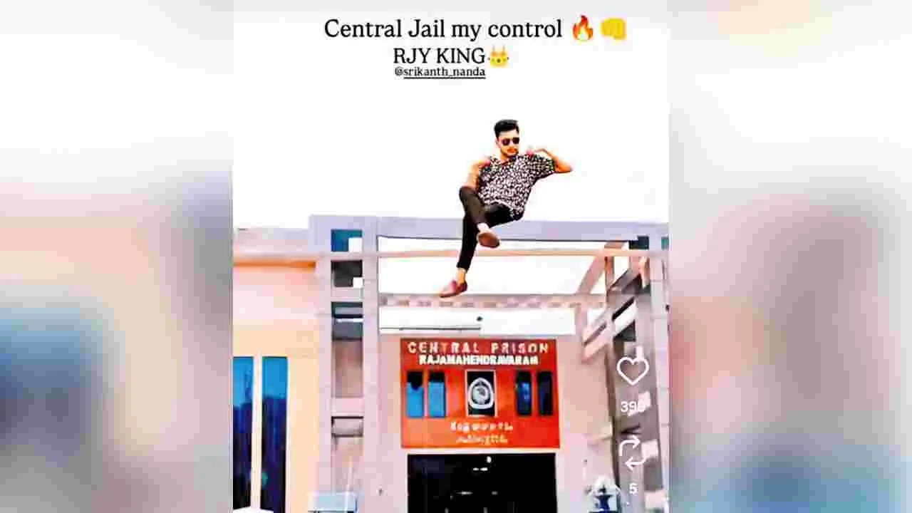 రాజమహేంద్రవరం, ఏప్రిల్ 6 (ఆంధ్రజ్యోతి): జైలుకు వెళితే ఎవరైనా అవవమానంగా భావిస్తారు..! తన కుటుంబం పట్ల ఈ సమాజం చిన్నచూపు చూస్తుందని ఫీలవుతారు..! కానీ.. చీటింగ్ కేసులో రిమాండ్ ఖైదీగా జైలుకెళ్లిన ఓ 32 ఏళ్ల యువకుడు మాత్రం.. ఏదో ఘనకార్యం సాధించినట్టు భావించాడు. కాలర్ పైకి ఎగరేసి, కాలుమీద కాలేసుకుని కూర్చున్న ఫొటోను.. సెంట్రల్ జైలుపై కూర్చున్నట్టుగా ఎడిటింగ్ చేసి సోషల్ మీడియాలో పెట్టాడు. ‘ఈ సెంట్రల్ జైలు నా అడ్డా.. ఇదంతా ఇప్పుడు నా కంట్రోల్లోనే ఉంది’ అనేలా పెట్టిన ఆ ఫొటో ఇప్పుడు సోషల్ మీడియాలో వైరల్ అవుతోంది. రాజమహేంద్రవరం మున్సిపల్ కాలనీకి చెందిన 32 ఏళ్ల అల్లాడ శ్రీకాంత్.. ఎల్ఎల్ఎం చదివాడు. బెయిల్ ఇప్పిస్తానని కొందరిని మోసగించడం, ఇతర అభియోగాలపై అతనిపై త్రీటౌన్ పోలీస్ స్టేషన్లో కేసు నమోదైంది. కోర్టు ఆదేశాలతో ప్రస్తుతం సెంట్రల్ జైలులో రిమాండ్ ఖైదీగా ఉన్నాడు.