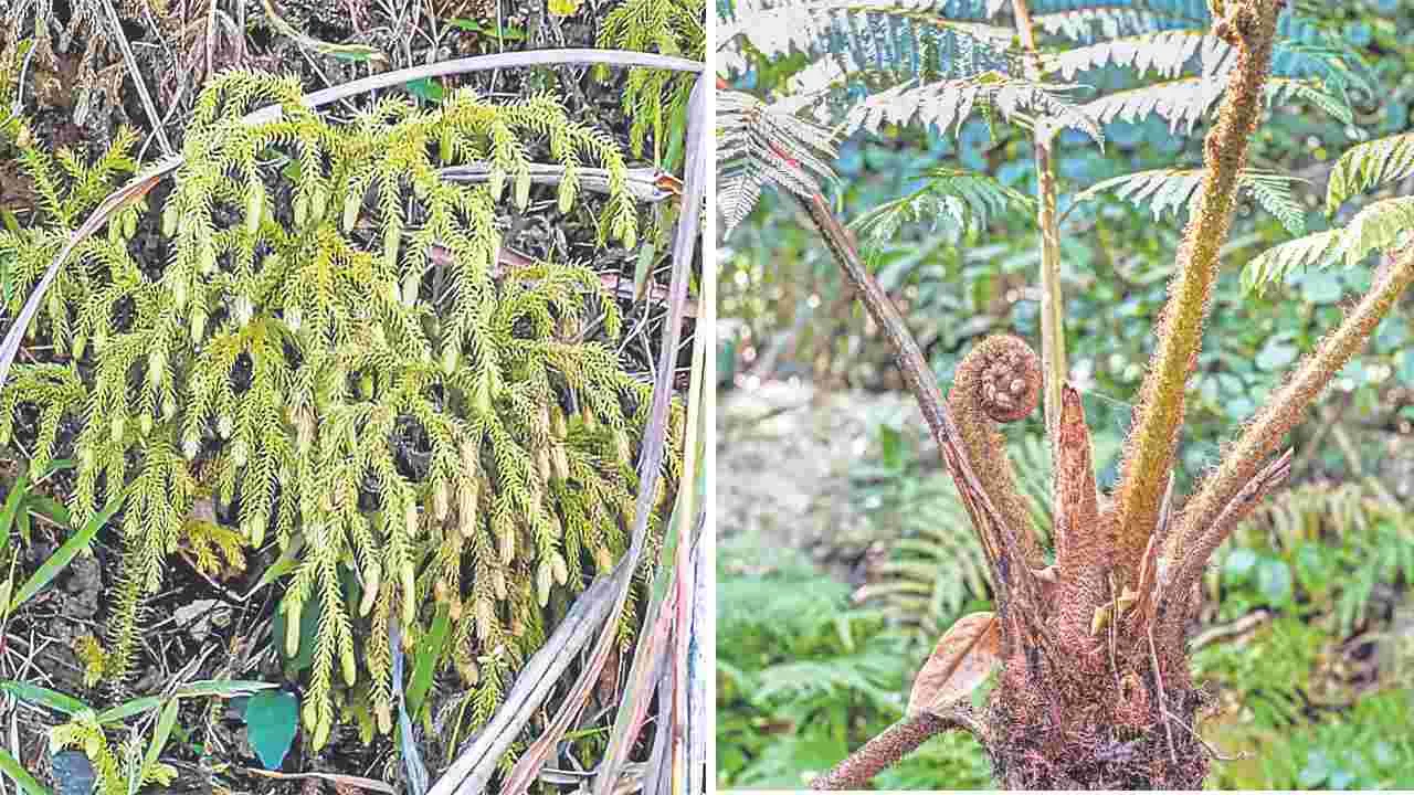 నర్సీపట్నం, మార్చి 25 (ఆంధ్రజ్యోతి): అల్లూరి సీతారామరాజు జిల్లా అరకు లోయ ప్రాంతంలో అరుదైన సైథియేసి గిగాంటియా (ట్రీ ఫెర్న్), లైకోపోడియం క్లావాటం (క్లబ్ మాస్, క్లబ్ నాచు) అనే ప్రాచీనకాలం నాటి జాతి మొక్కలు ఉన్నాయి. తేమ ఎక్కువగా, స్థిరమైన వాతావరణం ఉండే అడవుల్లో మాత్రమే ఈ రెండు రకాల మొక్కలు కనిపిస్తుంటాయని.. అనకాపల్లి జిల్లా నర్సీపట్నంలో ట్రైనీ డీఎఫ్వోగా పనిచేస్తున్న ఐఎ్ఫఎస్ అధికారి సదానందన్ తెలిపారు. ఈ మొక్కలకు సంబంధించిన పలు విషయాలను ఆయన ‘ఆంధ్రజ్యోతి’కి తెలియజేశారు. శిక్షణలో భాగంగా ఆయన అరకులోయలో కొంతకాలం ఉన్నారు. ఆ సమయంలోనే ఈ మొక్కలు తారసపడడంతో వాటిని కెమెరాలో బంధించారు.