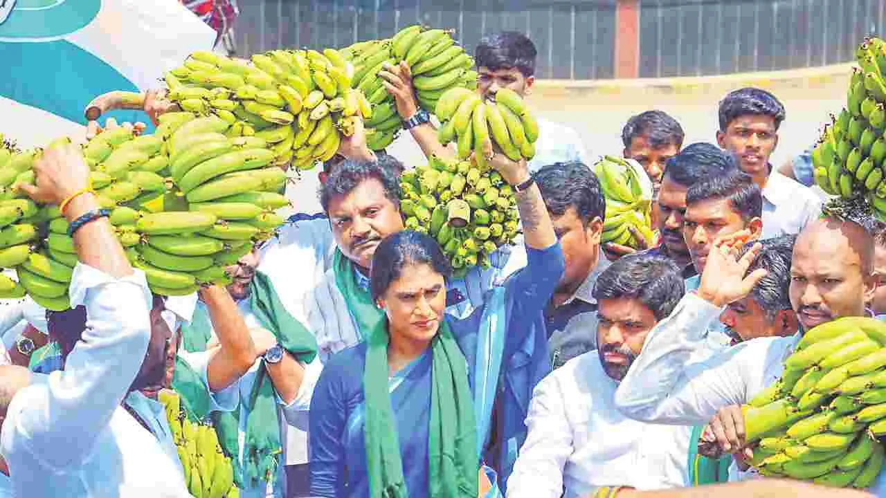 కడప, మార్చి 25(ఆంధ్రజ్యోతి): ‘విజయమ్మ రాసిన లేఖపై వైసీపీ అనవసరమైన రాద్ధాంతం చేసింది. ఆస్తులపై ఆమె రాసిన లేఖ సుప్రీం కోర్టు తీర్పుతో సమానం’ అని ఏపీసీసీ అధ్యక్షురాలు వైఎస్ షర్మిల అన్నారు. అరటి రైతులను ఆదుకోవాలంటూ బుధవారం ఆమె కడప జేసీ నిధి మీనాకు వినతిపత్రం అందించారు. తొలుత షర్మిల అరటి కాయలను వాహనంలో వేసుకుని జిల్లా కాంగ్రెస్ కార్యాలయం నుంచి స్వయంగా నడుపుతూ కలెక్టరేట్కు చేరుకున్నారు. ఆమె వెంట కాంగ్రెస్ కార్యకర్తలు ర్యాలీగా వచ్చారు. అనంతరం షర్మిల కలెక్టర్ కార్యాలయం వెలుపల మీడియాతో మాట్లాడారు. ‘‘వైసీపీ నేతలను కుక్కలని నేను అనలేదు. ‘విజయమ్మ మాట్లాడవద్దంటే మాట్లాడుతున్నారు... అంటే మొరగడం కుక్కల నైజం’ అని మాత్రమే నేనన్నాను. వాళ్లే భుజాలు తడుముకుంటున్నారు. వైసీపీ జోలికి నేను వెళ్లను. నా జోలికి వస్తే మాత్రం అఫెన్స్ గేమ్ ఆడడం నాకూ తెలుసు. నా లక్ష్యం జగన్ కాదు. వైసీపీ సైతాన్ సైన్యం మూలానప్రతిసారీ సంజాయిషీ చెప్పుకోవాల్సి వస్తోంది. జగన్ మార్చి 11, 2024న బనానా ఇంటిగ్రేటెడ్ ప్లాంటు పులివెందులలో ప్రారంభించారు. ఇది ఎన్నికల కోసం చేసిన స్టంట్ మాత్రమే. ఆ రోజు ప్లాంటులో కనీస వసతులు లేవు. నేను ప్రభుత్వాన్ని మాత్రమే ప్రశ్నించా. అరటి రైతుల కోసం నా పోరాటానికి మద్దతు పలకాల్సింది పోయి కోడిగుడ్డుపై ఈకలు పీకుతారా? సీఎంగా ఉండి బనానా ప్రాసెసింగ్ యూనిట్ ఎందుకు నడపలేదు? గల్ఫ్ యుద్ధం వల్ల ఎగుమతులు ఆగిపోయాయి. టన్నుధర రూ.26 వేల నుంచి రూ.4వేలకు పడిపోయింది. కడప జిల్లాలో కోల్డ్ స్టోరేజీ లేక రైతులు ఇబ్బందులు పడుతున్నారు. టన్ను అరటికి మద్దతు ధరగా రూ.12వేలిచ్చి ప్రభు త్వం కొనుగోలు చేయాలి’’ అని షర్మిల అన్నారు.