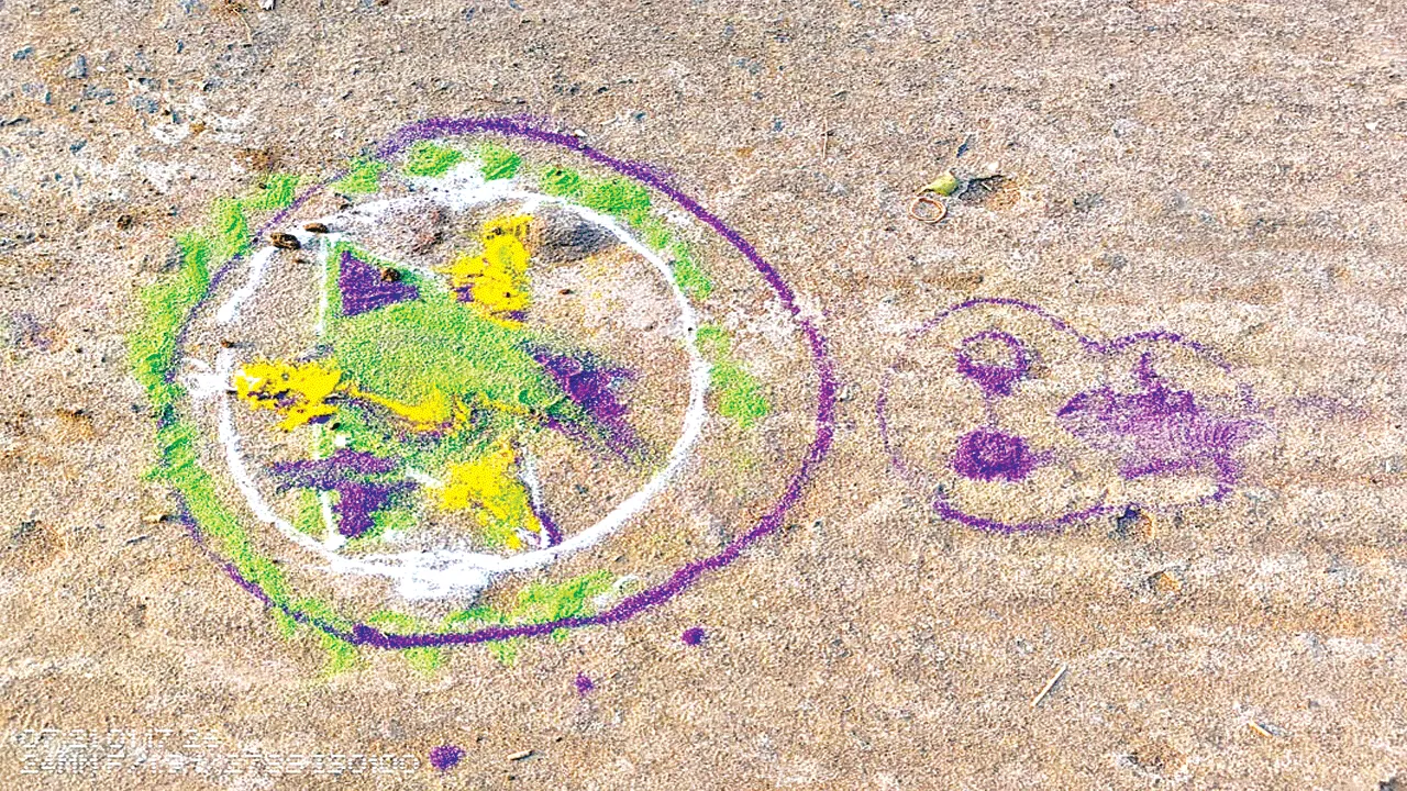 కవిటి, జనవరి 17(ఆంధ్రజ్యోతి): డి.గొనపపుట్టుగ గ్రామ సమీపం లో శనివారం క్షుద్ర పూ జలు కలకలం రేపాయి. గుర్తుతెలియని వ్యక్తులు చెల్లమ్మచెరువు నుంచి నీలాపుపుట్టుగకు వెళ్లే రో డ్డుపై శ్మశానానికి కూత వేటు దూరంలో క్షుద్ర పూజలు నిర్వహించినట్లు గుర్తించారు. ఈ రోడ్డుపై రంగులతో వేసిన బొమ్మలు, కపాలం బొమ్మలతో పాటు గడ్డితో తయారుచేసిన బొమ్మలకు రంగులు వేసి పూజలు చేశారు. ఎదురెదురుగా కూర్చునేందుకు వీలుగా క్లాత్లు వేసి ఉన్నాయి. రెండు రోజులుగా ఈ పూజలు నిర్వహిస్తున్నట్లు గ్రామస్థులు అనుమానం వ్యక్తం చేస్తున్నారు. శనివారం ఉదయం ఆ రోడ్డులో వెళ్లిన కొందరు స్థానికులు వీటిని గుర్తించి గ్రామస్ధులకు సమాచారం ఇచ్చారు. చలికాలం కావడంతో సాయంత్ర మైతే చాలు గ్రామాల్లో అందరూ ఇళ్లకే పరిమితమైపోతున్నారు. ఉదయం కూడా ఎండ వేడి వస్తే తప్ప బయటకు వెళ్లడం లేదు. ఈ నేపథ్యంలో ఆదివారం అమావాస్య ఏర్పడనున్న సమయం లో ముందస్తుగా ఇలాంటి పనులు చేశారా అని భయాందోళన వ్యక్తంచేస్తున్నారు. సంక్రాంతి సందడిలో అందరూ ఉన్న తరు ణంలో రాత్రి వేళల్లో ఇలాంటి చర్యలతో గ్రామస్థులు ఉలికిపడ్డారు. గ్రామంలో గ తంలో ఇలాంటి సంఘ టనలు ఎప్పుడూ జరగలేదని గ్రామస్థులు చెబుతున్నారు. ఈ విషయం సోషల్మీడియాలో హల్చల్ కావడంతో ఈ పనికి కొందరు యూ ట్యూబర్లు పాల్పడ్డారని, షూటింగ్ కోసం ఇలా చేసి వాటిని శుభ్రత చేయకుండా విడిచిపెట్టారని వాయిస్ మెసేజ్లును వాట్సాప్లో ఆయా గ్రామస్థుల గ్రూప్లోకి పంపించారు. దాంతో గ్రామస్థులు కొంతమేర ఉపశమనం పొందారు.